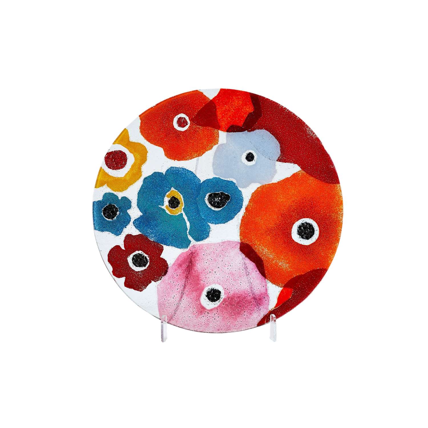 Handcrafted by Portuguese artisans, the Fused Floral Small Charger has an exquisite, joyful design that will add a burst of color to any dining space. The intricate spring floral design is created from layers of colored sand and clear glass shapes fused together in a kiln. This plate is food safe, watertight, and features an airy, elegant structure that makes it as functional as it is beautiful.