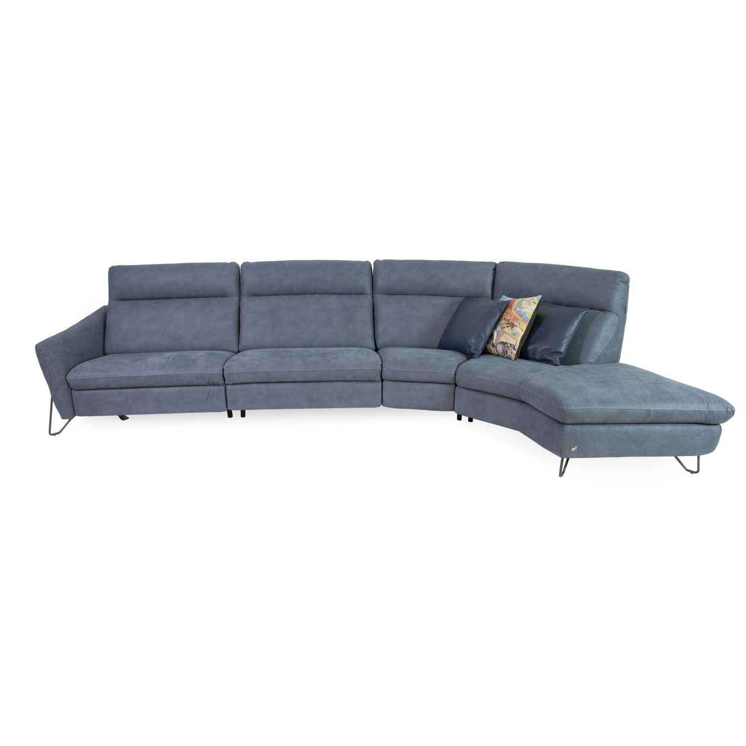 [0] => The Gaia Sectional, made in Italy, is chic and metropolitan, with soft blue-grey microfiber upholstery, slim grey metal legs, and a trapezoid-shaped peninsula. Two of the wide seats are equipped with power motion technology and recline at the push of a button so that you can adjust the back and leg rests to your preferred level of comfort. With clean lines and an industrial feel, Gaia will add both customizable comfort and refined style to your living space.