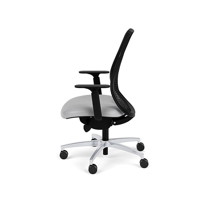 [0] => genie flex mid back chair w/full function arms, black frame, thermoplastic polyurethane, syncro control w/ seat slide, polished aluminum base, carpet castors, black flex back - stp66 staple mist (gr.1) list 1540