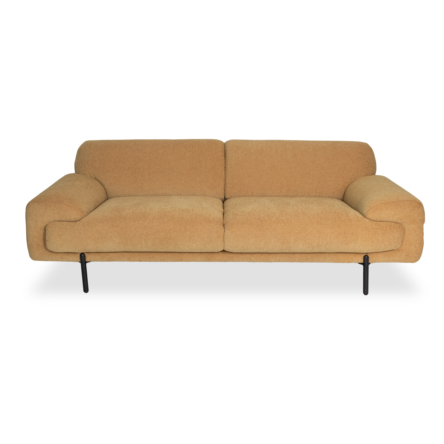 Bring a cheerful, glam impression to your living space with the Georgie Sofa. This sofa is upholstered in easy-clean polyester fabric in an eye-catching marigold yellow. The inner coil seat cushions have no-sag spring support, while the armrests curve over onto the cushions for a cozy look. Wide seats can accommodate up to 4 sitters for movie nights or get-togethers. Slim black metal legs finish off this sofa for a profile that blends retro and contemporary.