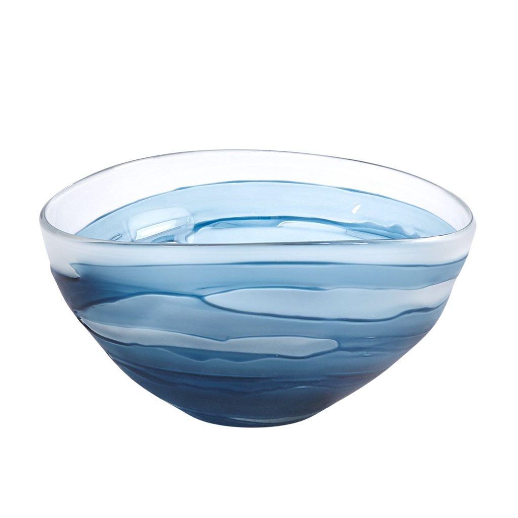 [0] => The Glacier Bowl is crafted from hand-blown glass, layered with icy blue tones that swirl across its frosted surface. Its rounded, asymmetric shape and soft matte finish evoke the fluid, sculptural beauty of glacial forms. Ideal for coffee tables or consoles, this bowl adds a calm, contemporary accent to any space.