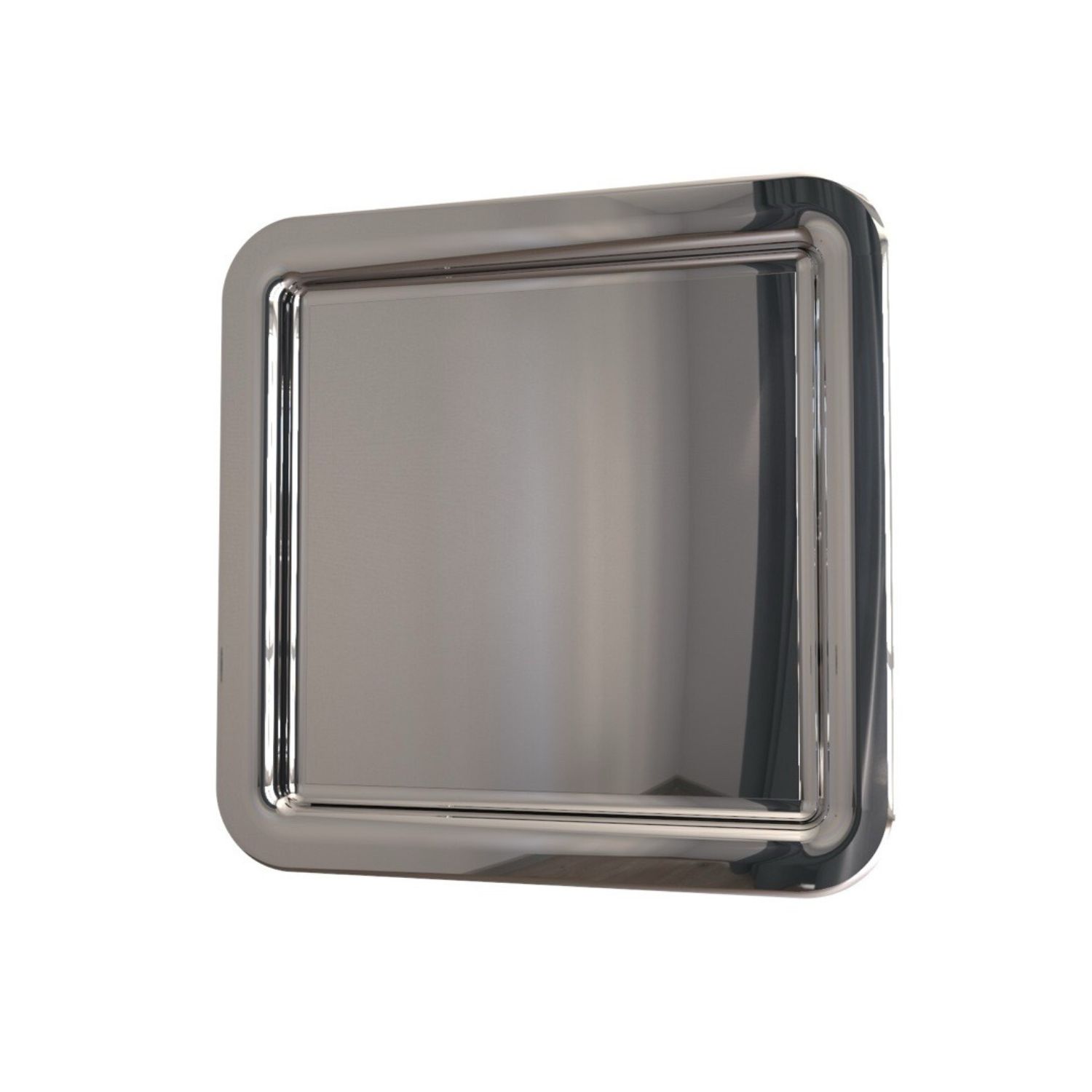 The Glenn Square Mirror, designed by Philip Jackson for Cattelan Italia, features pristine mirrored glass and a matching mirrored frame with rounded corners. A three-dimensional curve in the frame creates a unique, subtly distorted reflective effect that enhances Glenn's exquisite shine and sleek, contemporary look.