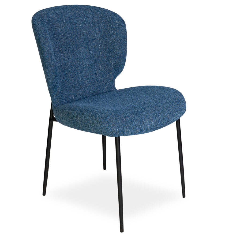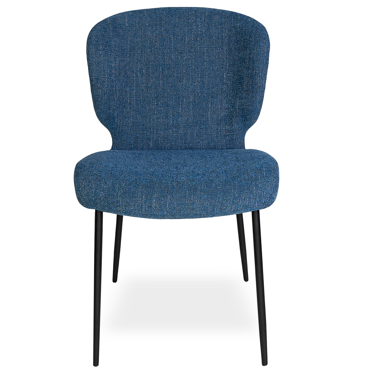 [0] => Designed in Denmark, the Glory Dining Chair has a welcoming silhouette with soft lines and a gently winged backrest that hugs your body as you sit. Glory is upholstered in dark blue boucle fabric and supported by slim metal legs with a black finish. A decorative zippered seam on the back adds a touch of flair. Equally at home as a dining chair, accent chair, or side chair, Glory will bring Scandinavian style and cozy comfort to any interior.