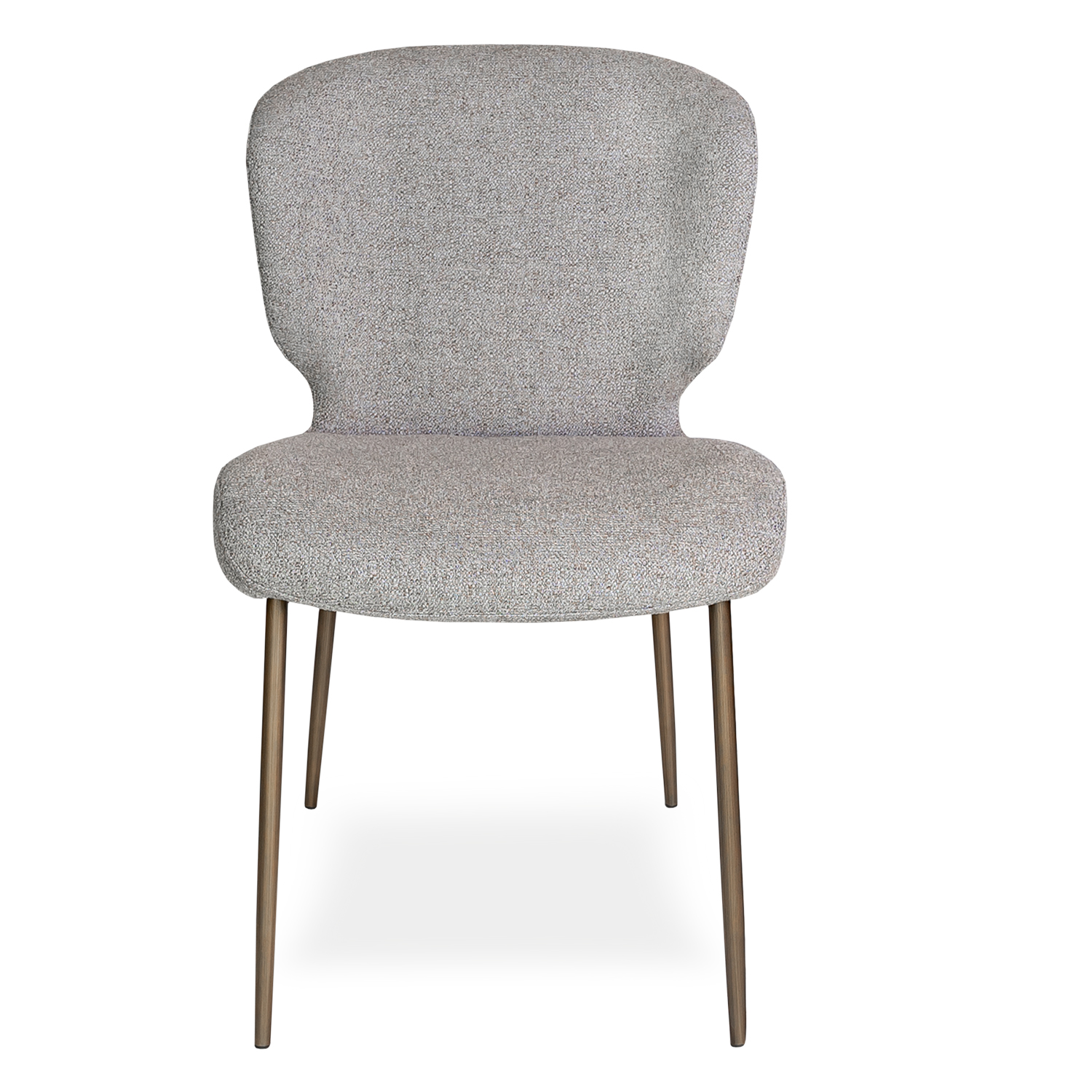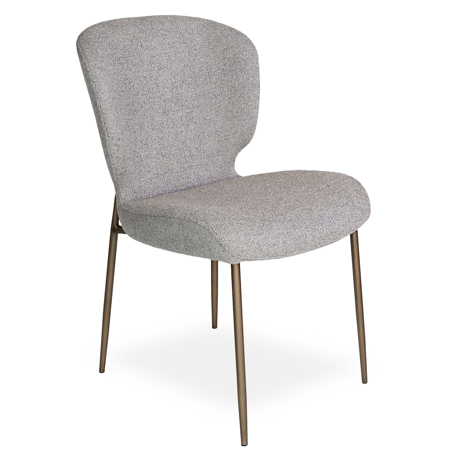 [0] => Designed in Denmark, the Glory Dining Chair has a welcoming silhouette with soft lines and a gently winged backrest that hugs your body as you sit. Glory is upholstered in pebble earth boucle fabric and supported by slim metal legs with an antique brass finish. A decorative zippered seam on the back adds a touch of flair. Equally at home as a dining chair, accent chair, or side chair, Glory will bring Scandinavian style and cozy comfort to any interior.