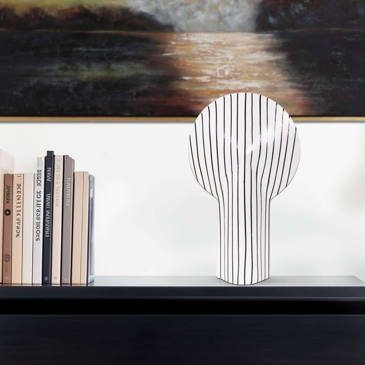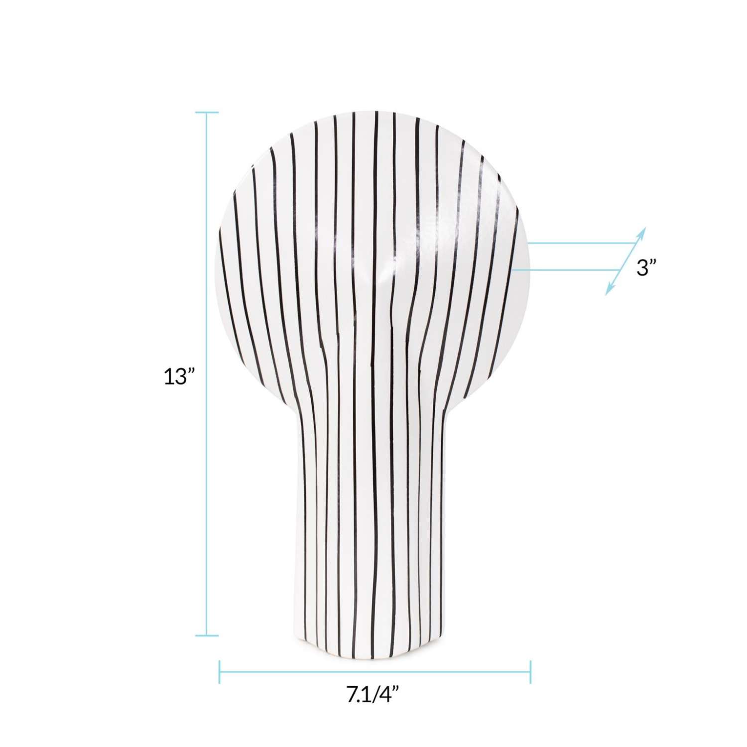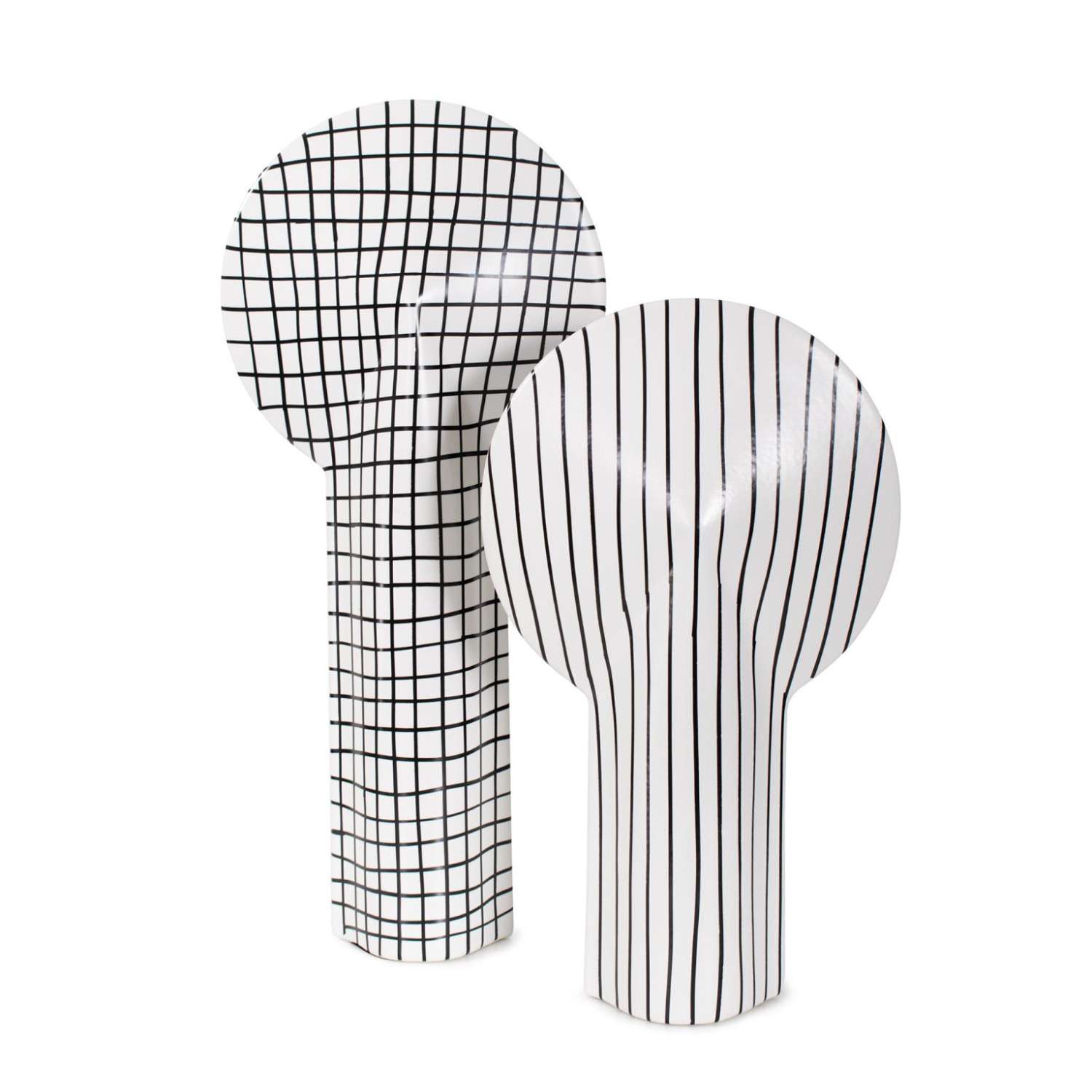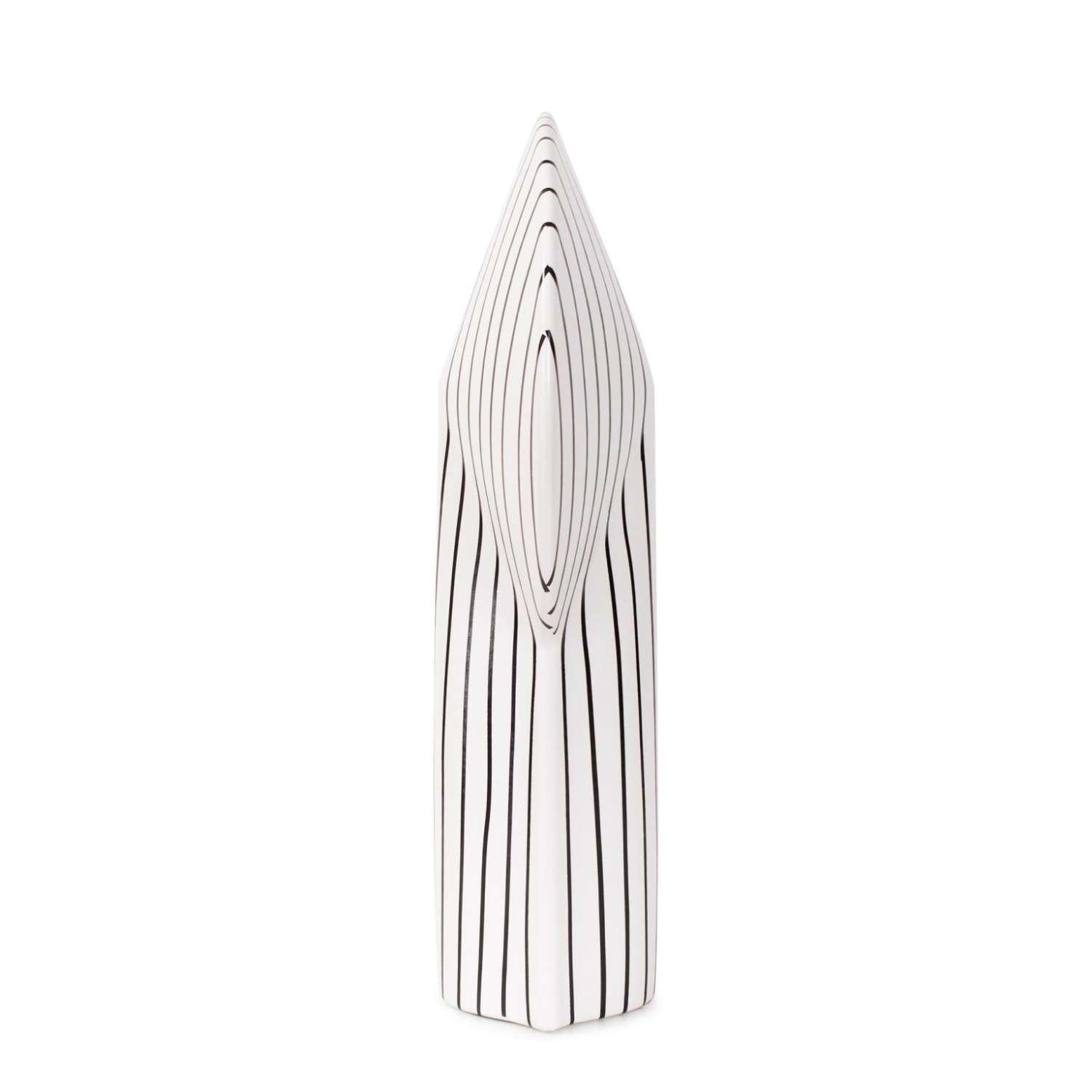 [0] => Made of matte white ceramic, the Hansford Keyhole Short Vase features a black striped pattern and an eye-catching form with an enclosed, circular upper section that rests on an elongated base. Though not able to hold a bouquet like a traditional vase, Hansford is nonetheless a unique art object that will add flair to a range of contemporary interiors. Pair with the companion Hansford Keyhole Tall Vase for a one-of-a-kind statement.