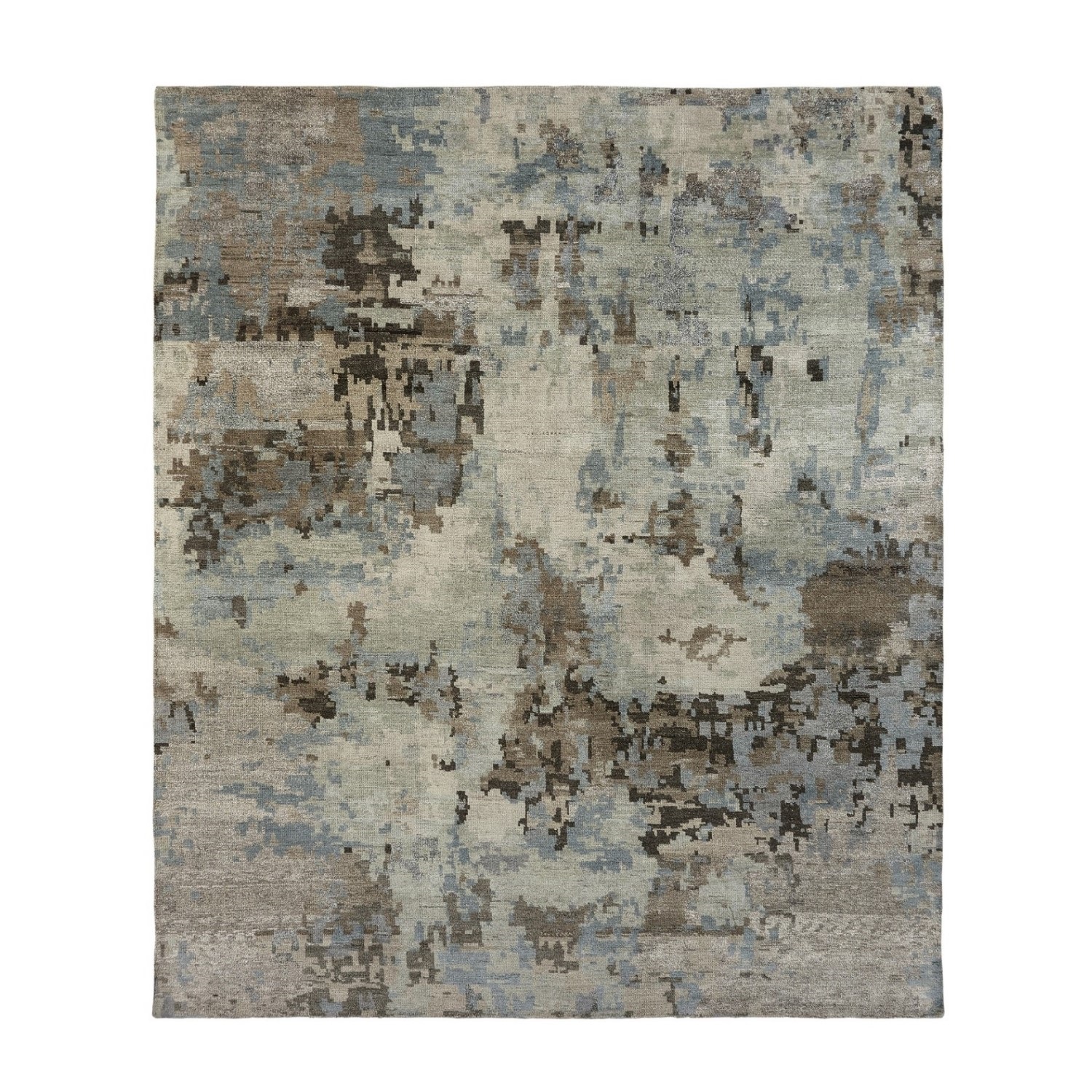 The Harlowe rug, shown here in an Earth & Water pattern, is perfect for adding modern flair and a touch of warmth to your interior. This rug is hand-spun from a blend of wool and Silkette™ viscose yarn, which has a silk-like feel and lustrous look, then hand-knotted in a Turkish knot weave. Understated shades of grey, brown, and blue mix and fracture to evoke the feel of an abstract landscape.