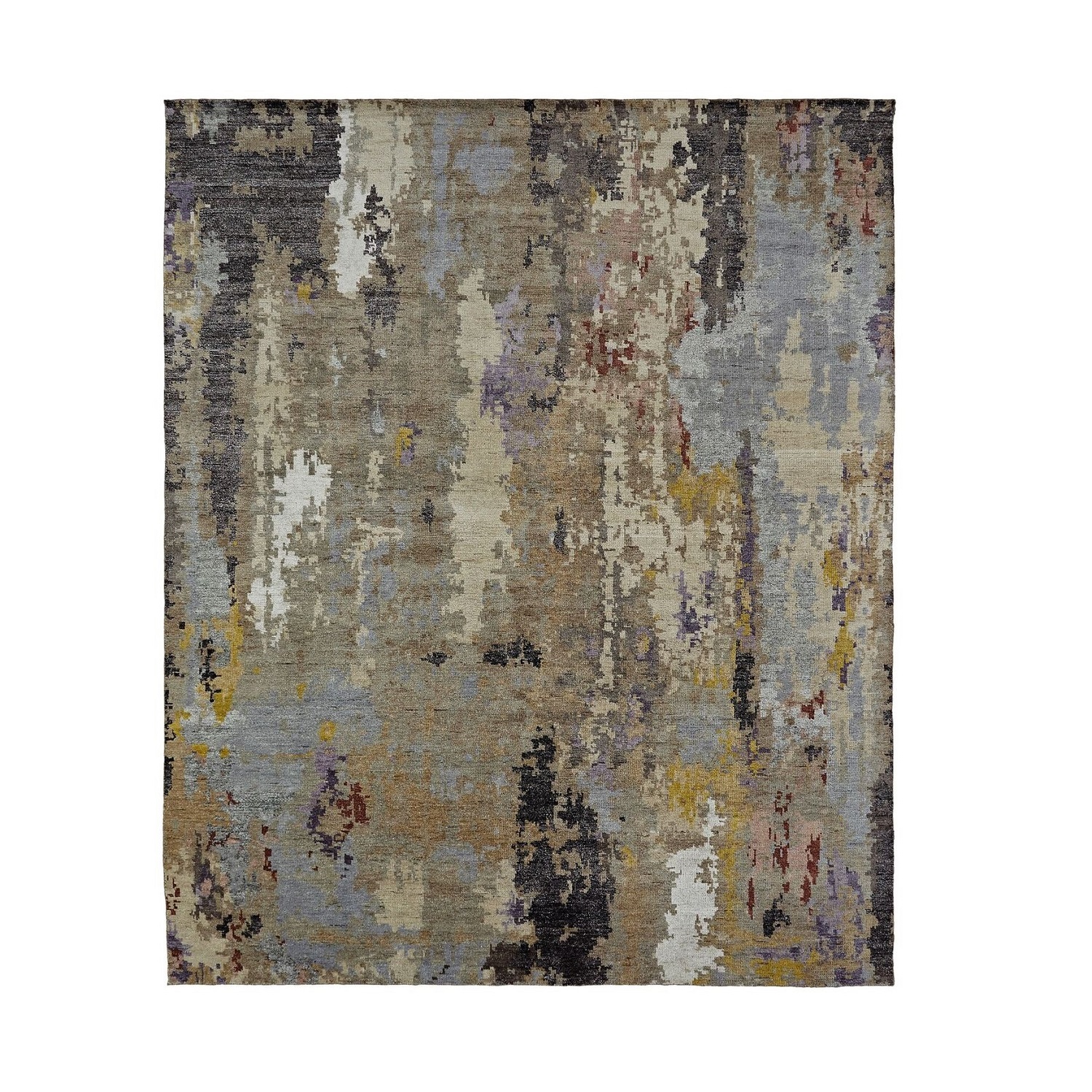 The Hazel rug is contemporary with variegated tones of dark taupes and soft greys. Hazel is handcrafted in a Turkish knot weave with hand-spun wool and Silkette, silk-like viscose yarns, against a natural cotton backing.