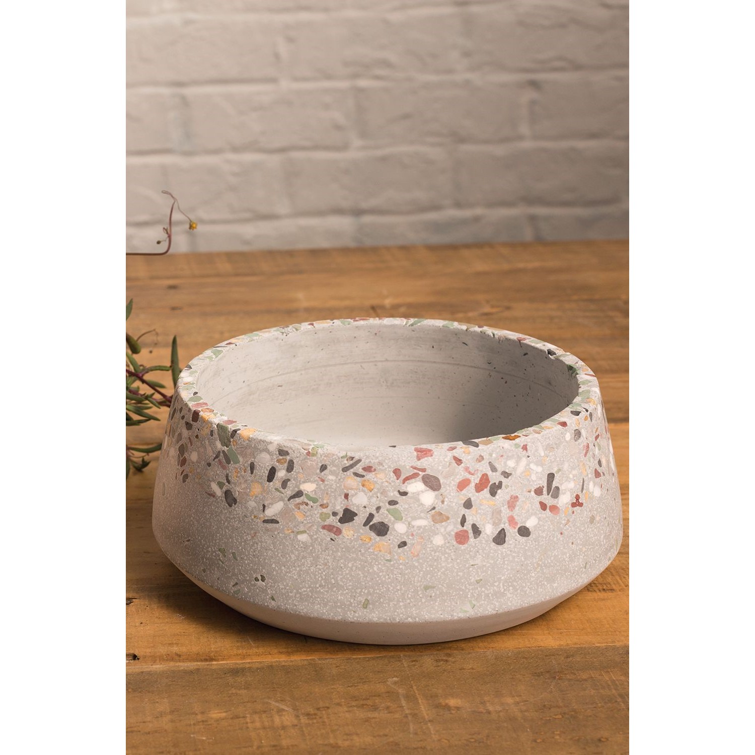 [0] => The Heather Medium Bowl has a minimalist, contemporary silhouette and a lightly speckled grey finish adorned with colorful flecks around the rim that bring an organic playfulness to the design. Made from ceramic, the Heather Medium Bowl can be placed on your shelf, table, or credenza by itself or with the Heather Large Bowl to add a subtle color accent to any space.