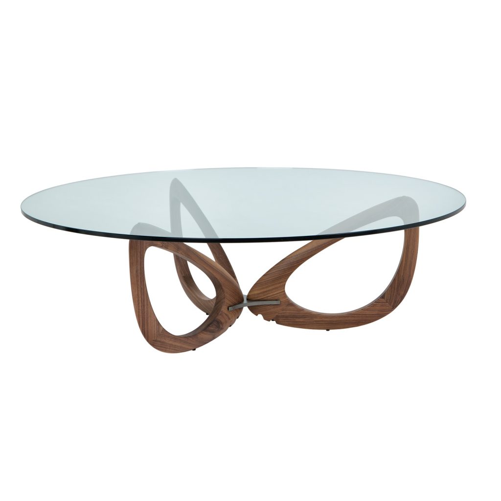 [0] => helix cocktail table 120cm round natural walnut base nc transparent varnish op0 /clear glass top design: piero de longhi.