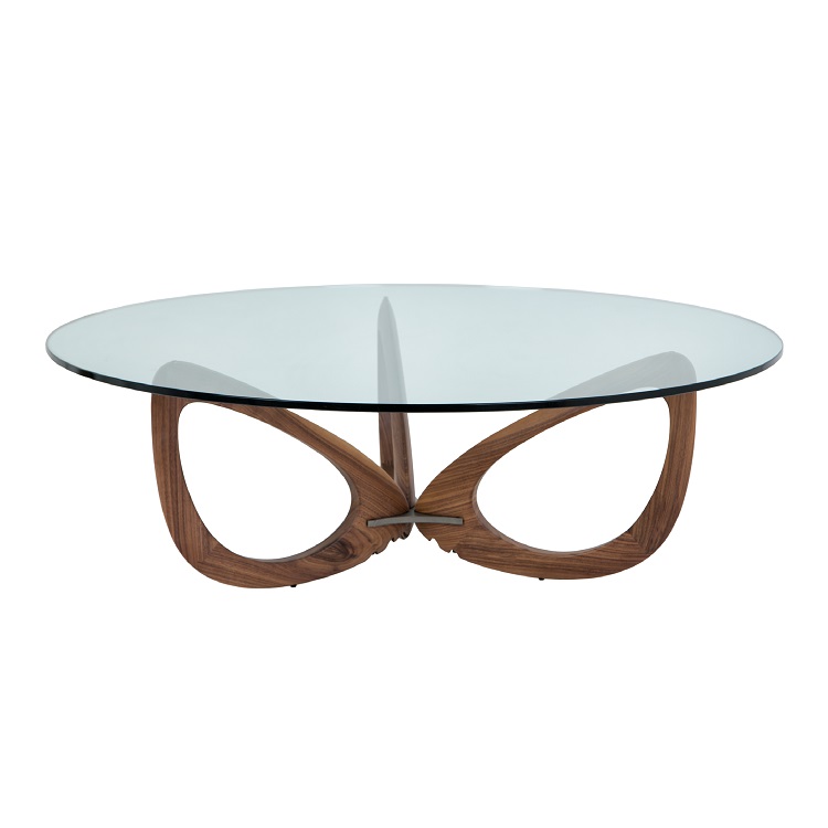 [description] => Atari Coffee Table 120cm Diameter With Clear Glass Top, Base In Natural Caneletto Walnut Base. 47.25" Diameter X 15" High.