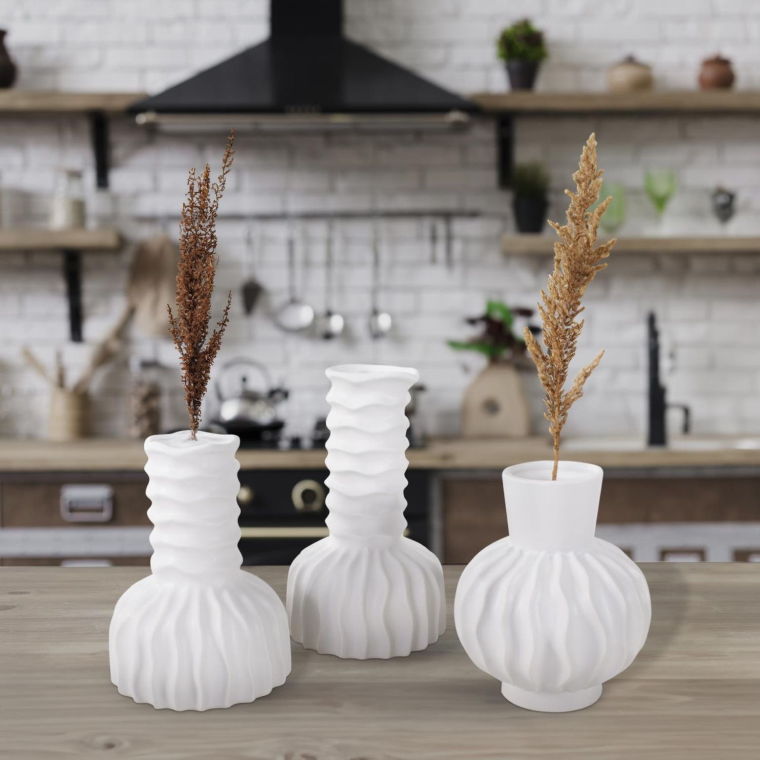 [0] => The Herring Vase adds sculptural appeal to modern interiors. Expertly crafted from high-quality ceramic and showcases an abstract matte white finish. The vase is designed with a layered texture and an organic form that makes it an exceptional accent piece, perfect for shelves, mantels, or tabletops.