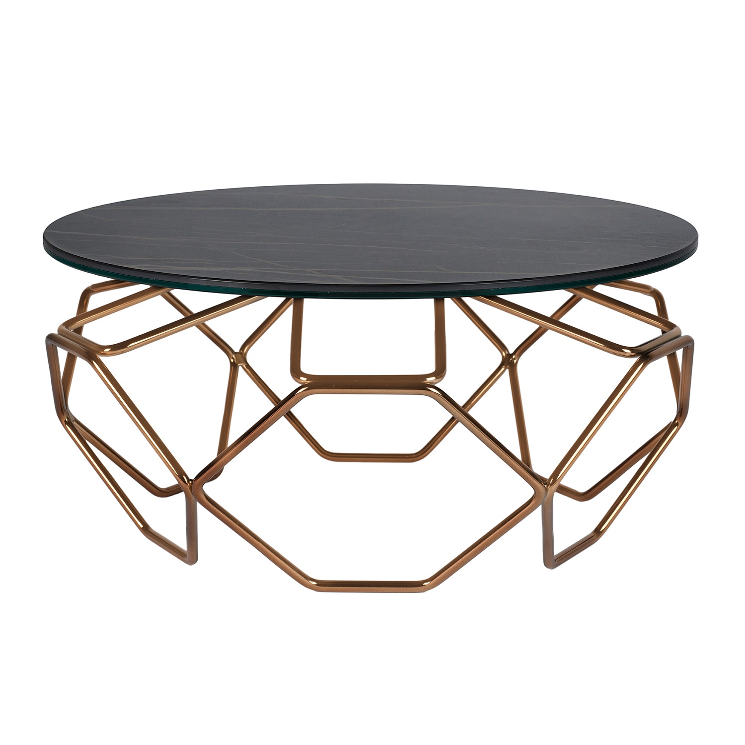 The Hive dessert table features cutting edge Italian design with a circular Black Desire ceramic tabletop. The metalwork base has a stunning honeycomb design.