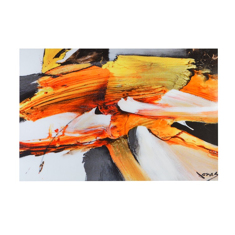 The Holding Truth painting features vibrant tones of orange, black, and white, layered together with wide, bold brush strokes. Sweeping curves and striking contrasts define this painting, which will bring a contemporary color accent to your home or office space. Holding Truth has a gloss finish.