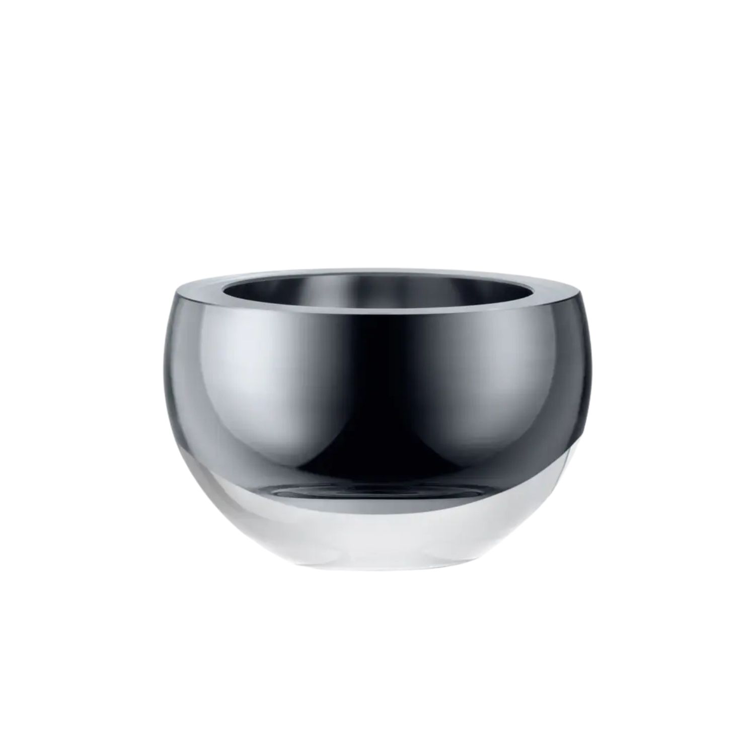 The Host Bowl has a solid, grounding presence with its curved shape, thick walls, heavy base, and flat, polished rim. Made of mouth-blown glass by master glassblowers, the Host Bowl's inside surface is painted by hand with real platinum. This food-safe bowl can be displayed as decor or used to serve nuts, olives, and other snacks.