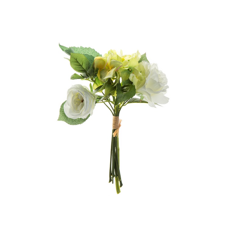 [0] => White roses and hydrangea floral bouquet.