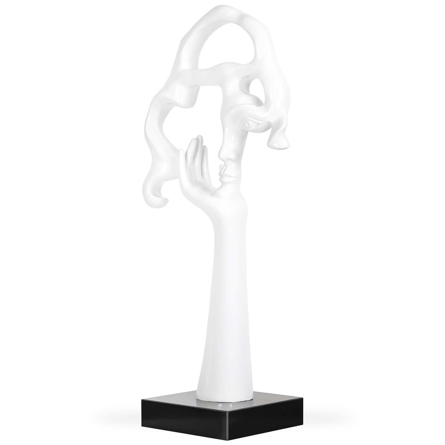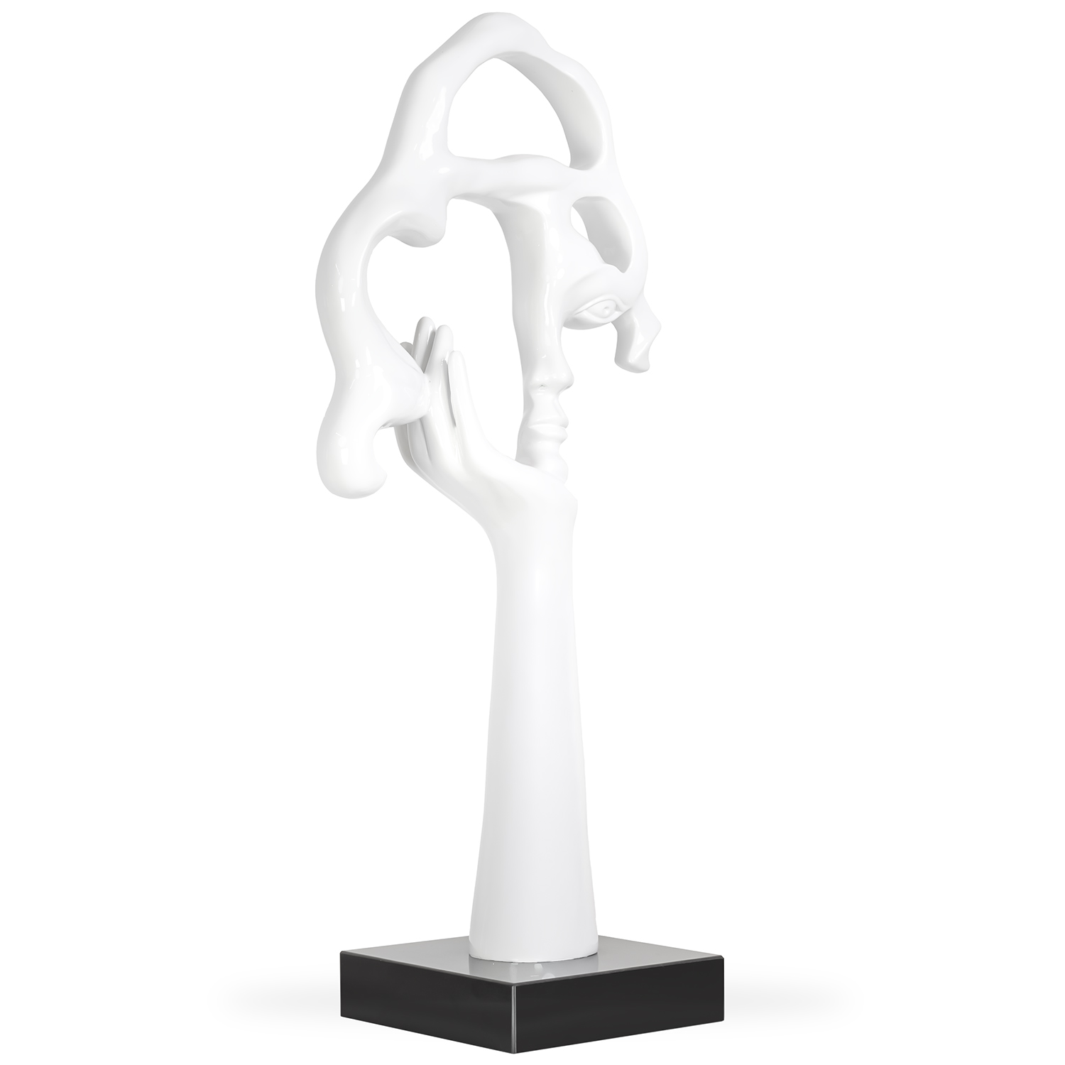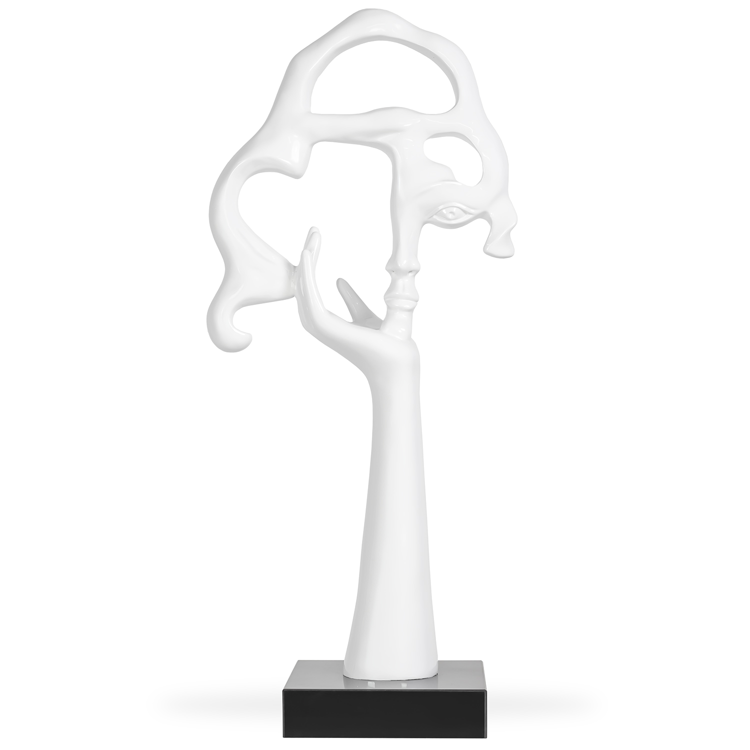 [0] => Made by Ambienti Glamour of Italy, the Il Volto Sculpture is a semi-abstract rendition of a figure cradling their face in the palm of their hand. Cutouts in the figure's face leave only the nose, mouth, and one eye visible, creating a play on negative space that results in a fluid, intriguing look. Available with a glossy white finish, Il Volto stands on a black stone base for added stability and style.