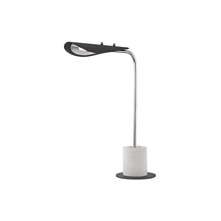 The Isla table lamp brings an urban, modern vibe to your work or living space with its stylishly curved black shade and brass stem. Isla has a G-9 LED bulb.
