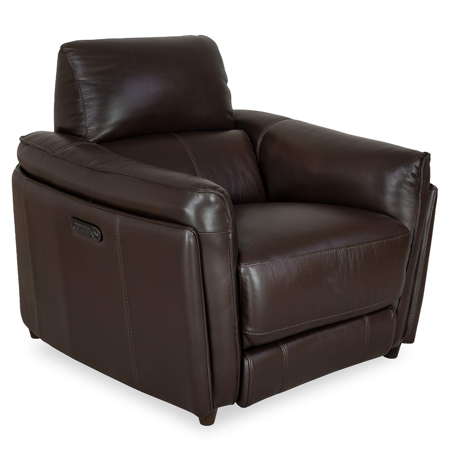 The James Recliner, featuring power motion, embodies the height of comfort. With a wide seat, soft cushions, a power footrest, and an adjustable headrest that can move up, down, and forward, James adapts to your body to provide you with comprehensive support. Clean lines and protected dark brown leather are accentuated with linear stitching, making this recliner versatile for nearly any space. Part of our Essentials Collection, James is also built to accommodate your phone -- charge your phone or other devices with the built-in USB port while you sit back and relax.
