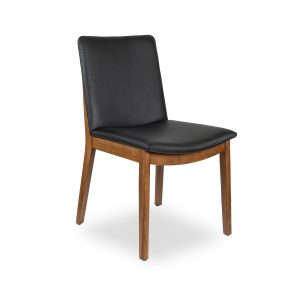 [description] => Caroline Dining Chair - Black 2500 Soft Leather - Walnut Legs Hs381