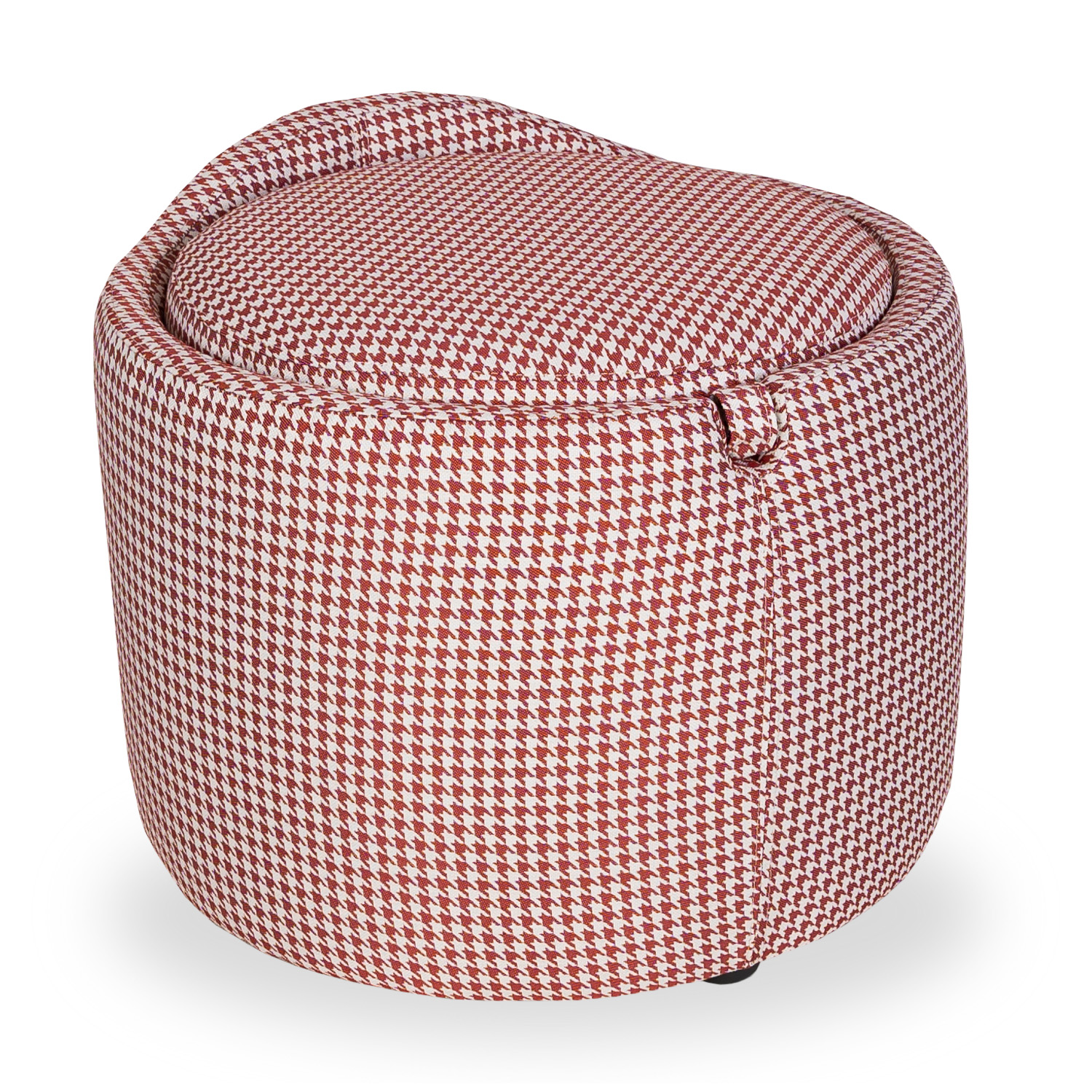 Both stylish and functional, the Jazz Ottoman features a handy storage compartment, fabric upholstery in a red and white houndstooth pattern, and a unique silhouette with an asymmetrical, slightly raised top edge. Jazz comes with a convenient loop on its cushion that fits into a corresponding divot, letting you easily lift the top off to access the storage space underneath. Whether you use this ottoman for sitting, resting your feet, or stashing living room extras, Jazz can handle it all -- and look great doing it.