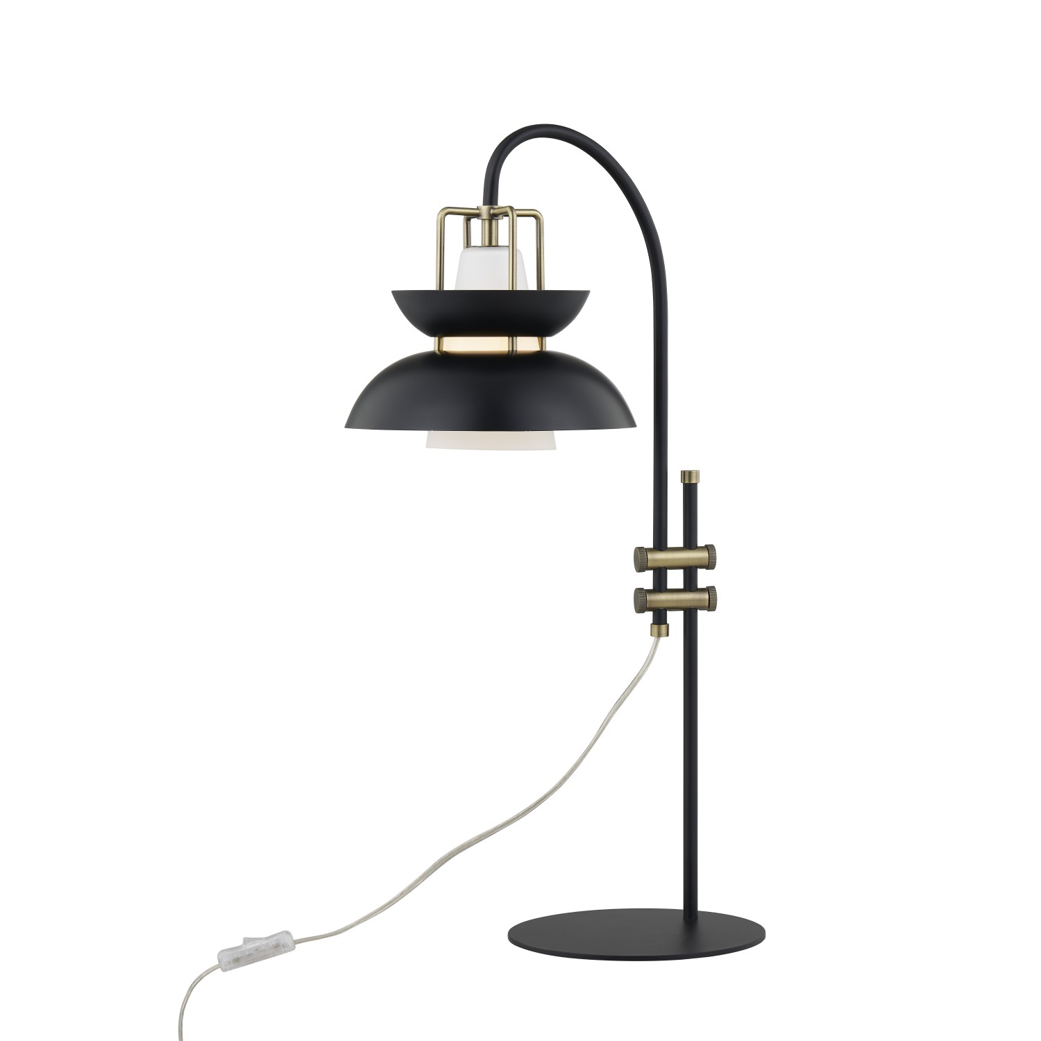 [0] => The Jefferson Table Lamp is truly a statement piece, combining classic and contemporary elements to form one eclectic design. Its matte black structure features stylish bronze accents and a cylindrical white shade, creating an edgy, industrial look. Jefferson has an on/off cord switch.