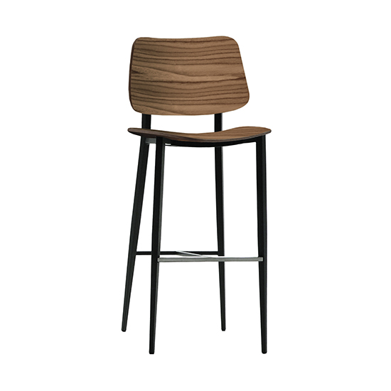 Designed in Italy, the Joe Counter Stool features a sleek, simplified profile with a gently curved seat and backrest. The horizontal grain of the walnut-veneered wood contrasts with the slim, tapered shape of the graphite metal legs. Minimalist yet stylish, Joe will integrate easily into a variety of design environments.