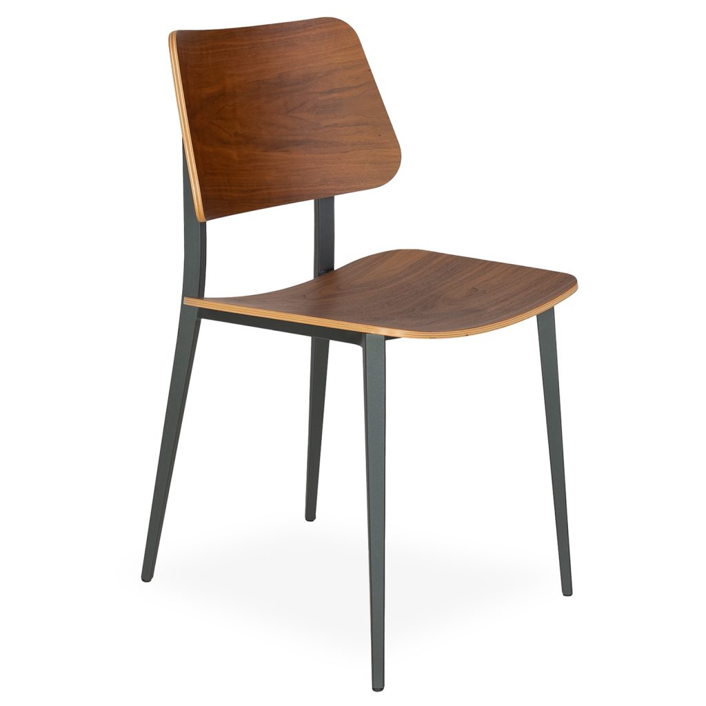 Designed in Italy, the Joe Dining Chair features a sleek, simplified profile with a gently curved seat and backrest. The horizontal grain of the walnut-veneered wood contrasts with the slim, tapered shape of the graphite metal legs. Minimalist yet stylish, Joe will complement a variety of dining room aesthetics.