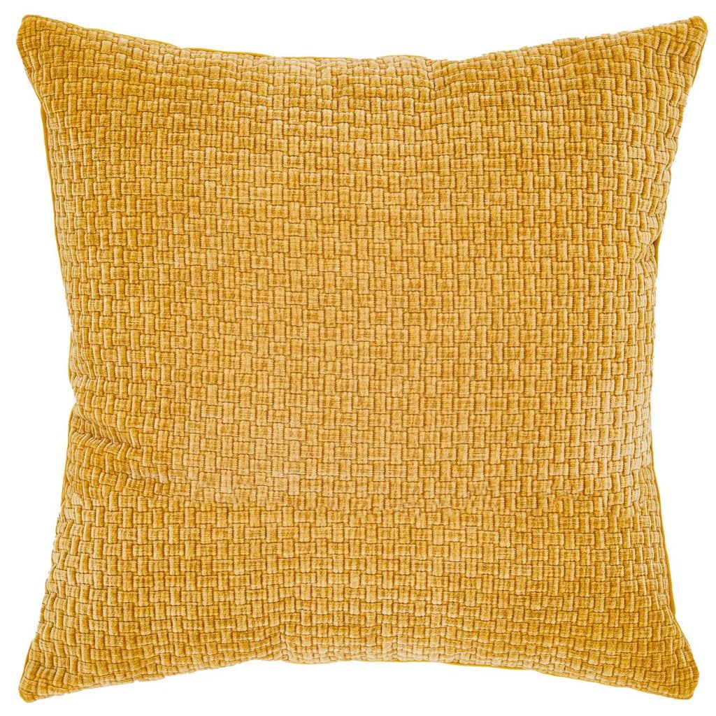 The Jolie Pillow features a cheerful shade of sesame yellow that will add a pop of color to your favorite sofa or accent chair. Jolie is outfitted in a soft, velvety cover with a basketweave texture on the front and a smooth surface on the back. A polyester filling gives this pillow a satisfying plumpness, while a discreet zipper allows the cover to be removed for spot-cleaning if needed.