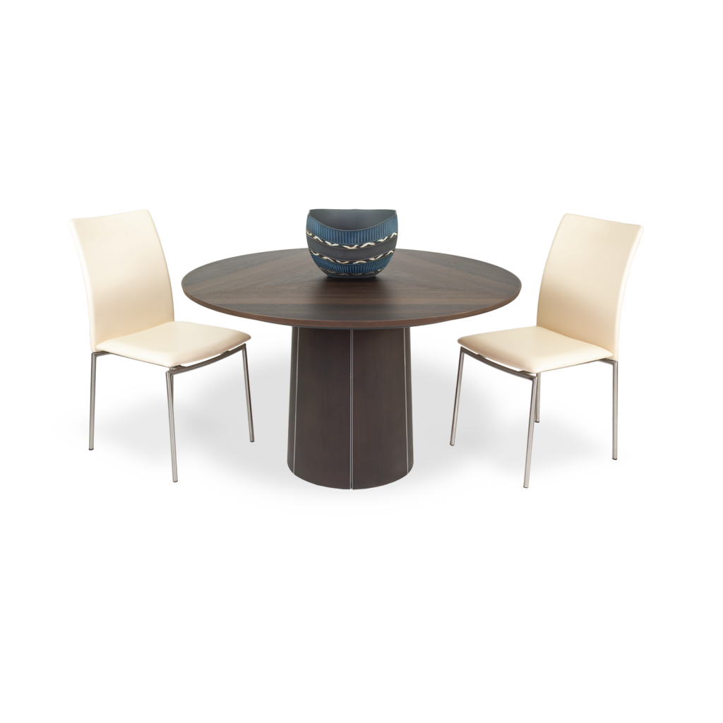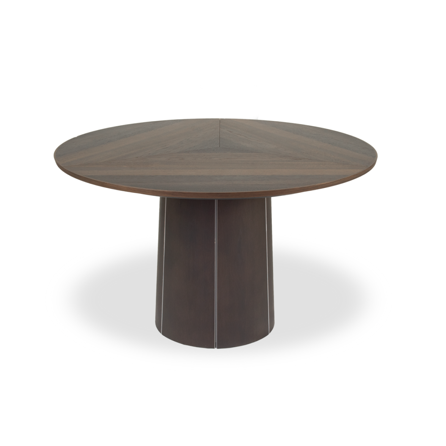 The Jones dining table by Skovby of Denmark, available with a smoked oak top, is a beautiful contemporary dining table with clean lines and superior craftsmanship. The Jones seats six to nine people when fully extended. Simply turn the plate under the top and watch as it separates to reveal the self-storing leaves, which unfold with a light touch thanks to an innovative spring mechanism placed in the center of the base.
