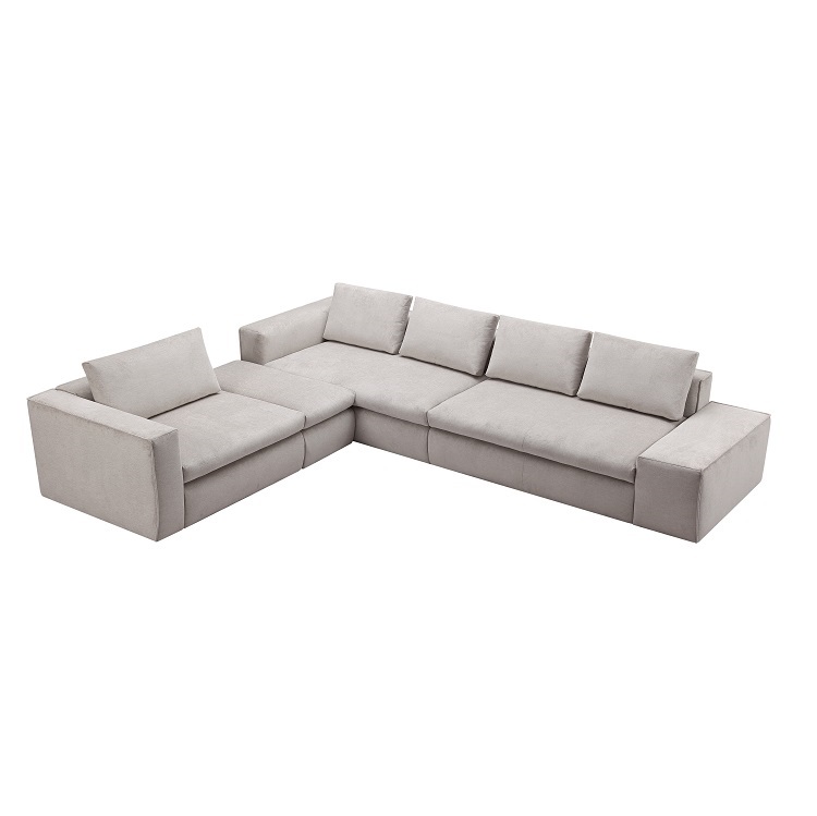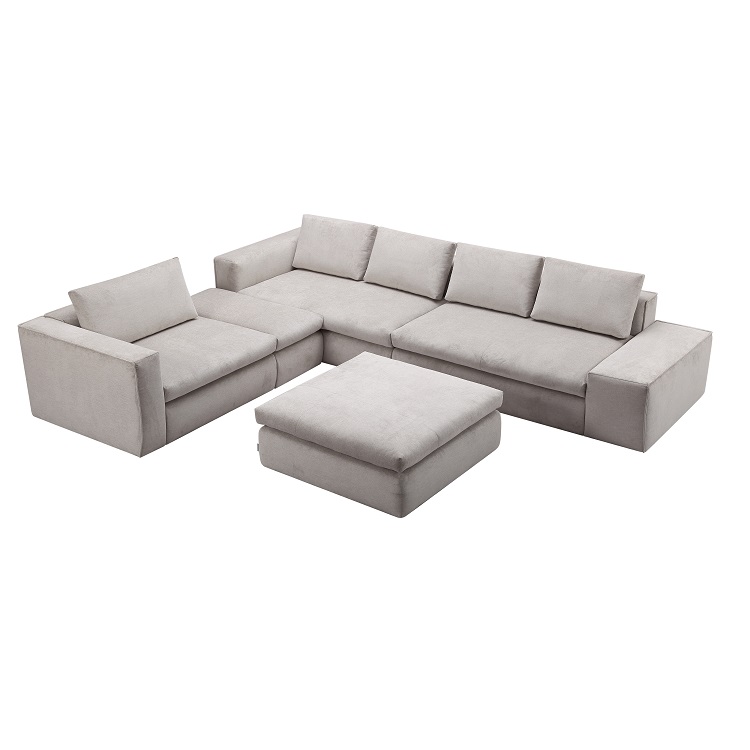The Julia sectional, available in natural fabric, features minimalist geometric design with broad wide seats and armrests. Julia's casual contemporary design and soft color enables it to fit into a variety of design environments. Additionally, Julia features LiveSmart fabric that is water and stain resistant, allowing for easier cleanup of wine, coffee, salsa, you name it!
