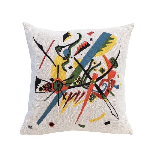 [0] => The Kandinsky - Kleine Welten I Pillow will add a creative touch to your living space. Mid-toned primary colors form an abstract interpretation of a small world, with various lines and geometric shapes. What makes the pillow truly "art" is its jacquard style woven design that brings Kandinsky's work into your home, directly imported from France. The perfect gift or addition for an art enthusiast or anyone who loves a timeless masterpiece.