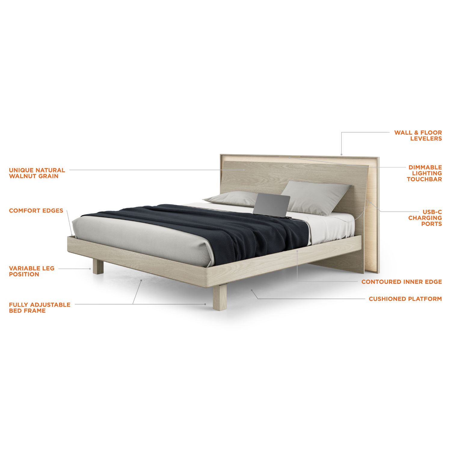 [description] => Kava Queen Bed Natural Walnut
