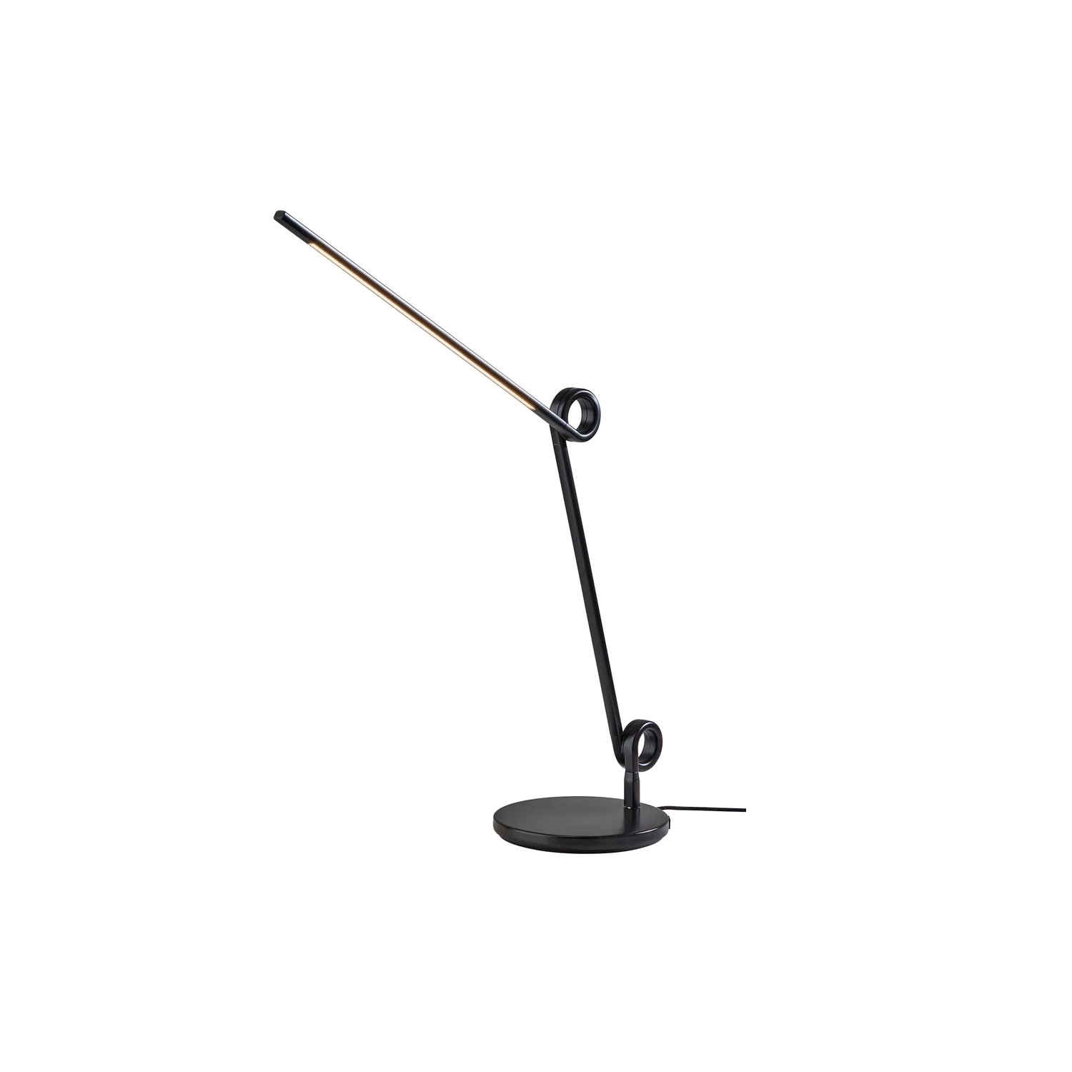 [0] => Bring high functionality and elegant modern style to your office with the Knot LED Desk Lamp. Made of black metal, this lamp creates an instant impression with its ultra-slim frame featuring two loops that mark places where you can adjust the height and direction of the lamp. Knot's integrated LED strip emits 650 lumens of light at a warm 3000K color temperature to ensure you have adequate illumination for your workspace, while a 4-way touch switch lets you find your perfect brightness level. Available with a black fabric-covered cord, the Knot Desk Lamp also features USB and USB-C ports in its base for easy charging of your devices.