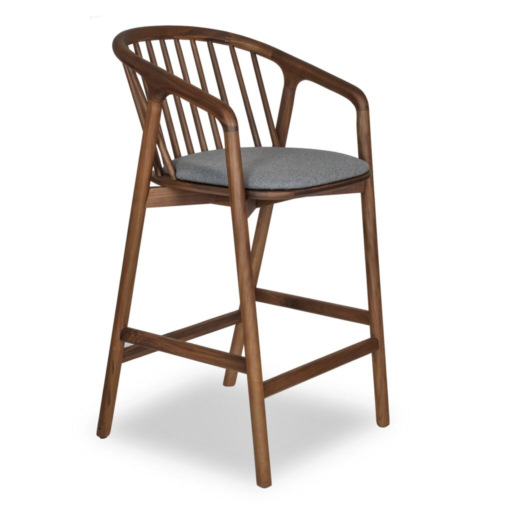 [description] => Lake Barstool Solid Walnut With Grey Fabric Seat