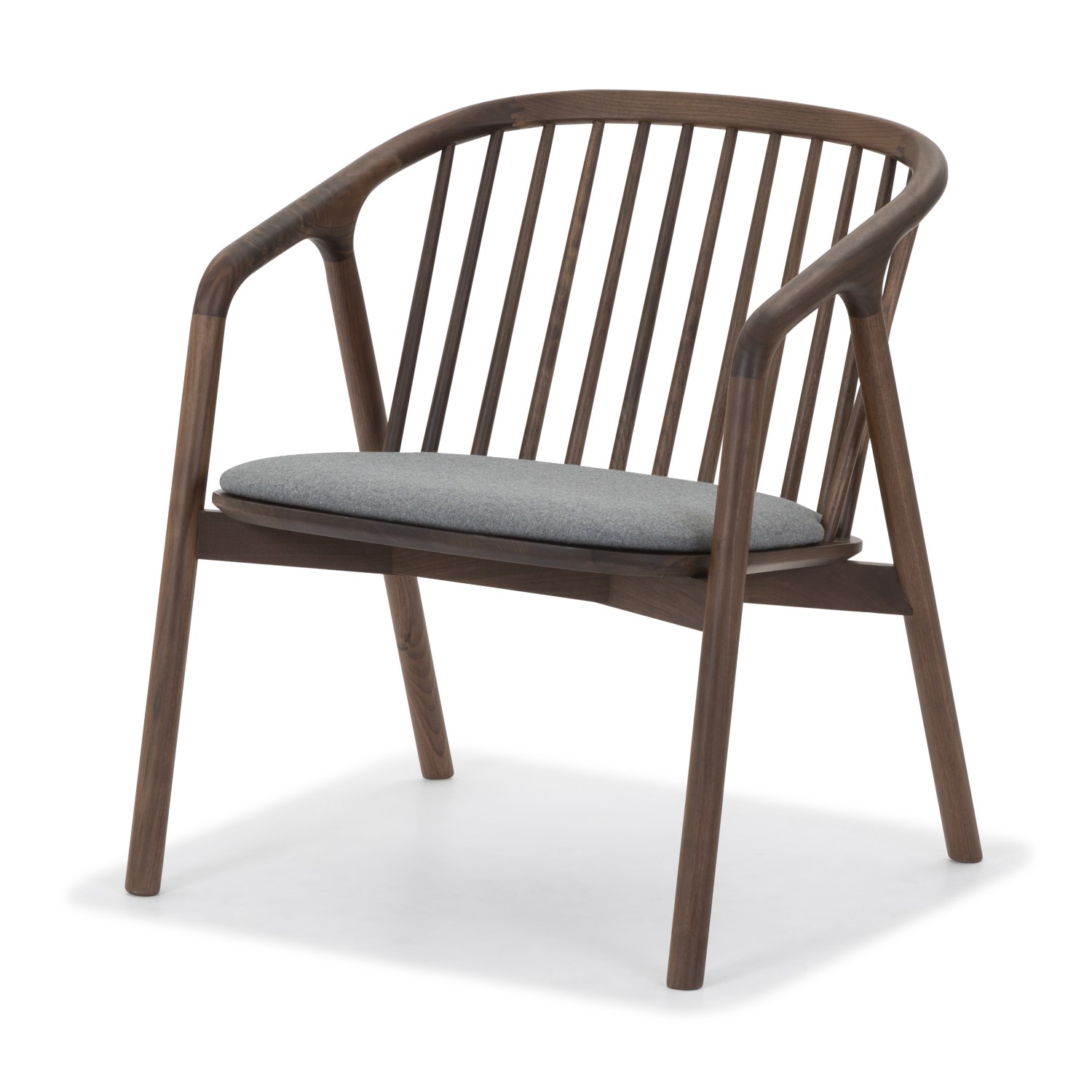 [0] => lake lounge chair - solid walnut w/ grey fabric seat