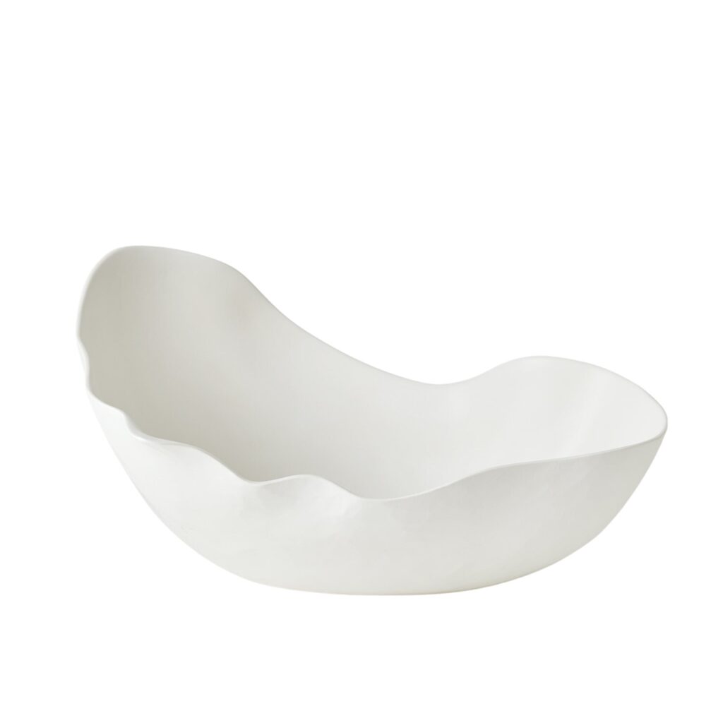 [0] => Handmade by skilled artisans from Portuguese ceramic, the Large Horn Bowl features a matte white finish and a billowing, organic silhouette. With its asymmetrical shape and gently ruffled edges, this bowl evokes a windborne leaf, a marine lifeform, a piece of fabric caught in the breeze, and more. While not food safe, the Horn Bowl is an elegant accessory that will bring a sense of refinement to any room.