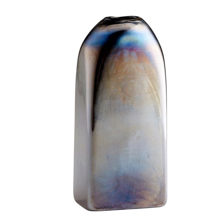 The Montague vase, available in gun metal glass, is a beautifully crafted vase whose dark glass reveals iridescent patterns of color. The Montague is subtle art at its best and serves as an eye-catching complement to existing design styles and colors.
