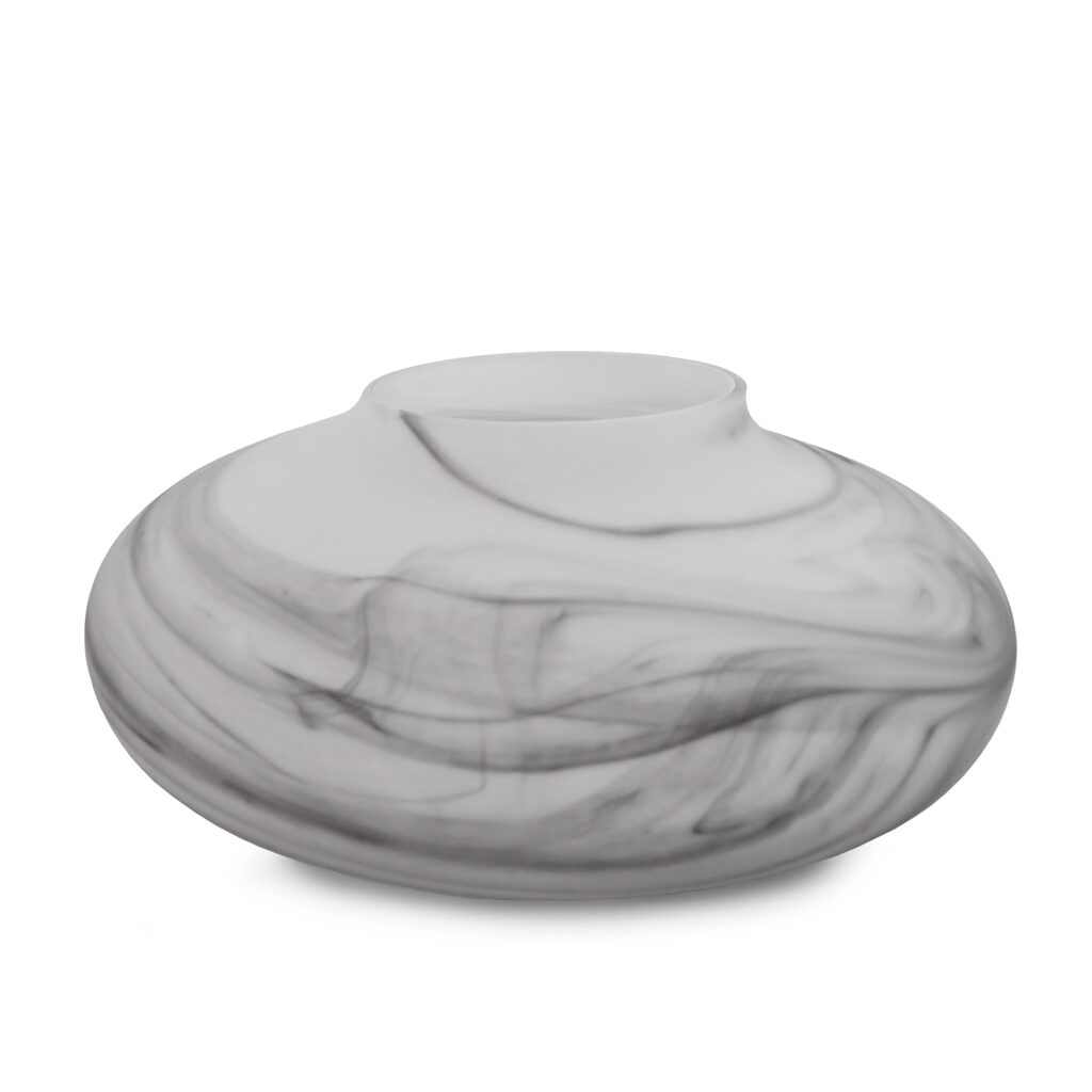 The Large Moon Mist Vase has a subtle chic look and style, with a black and white swirl base that makes it appear as if it was formed by rising smoke or fog. Though minimalist, this piece will beautifully accent any living or office space.
