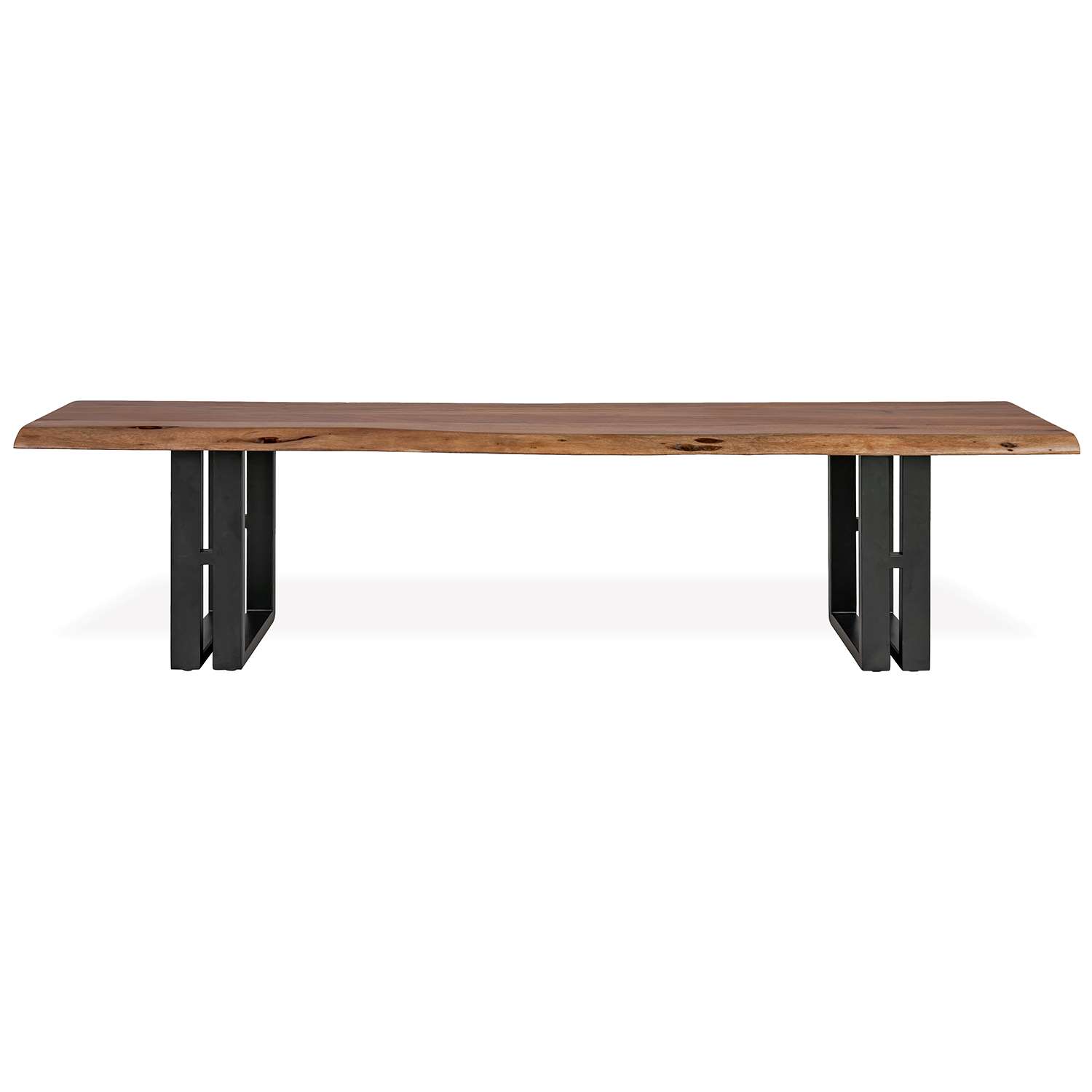 [0] => The Lark Bench features an acacia top, raw steel lark base, and tapered edges that add a natural vibe. The warm acacia tone and the cool steel base create a visually striking contrast, and the thick steel legs are durable and smooth. Perfect for bringing an organic vibe to your entryway, or serving as a spacious, convenient bench for dining.