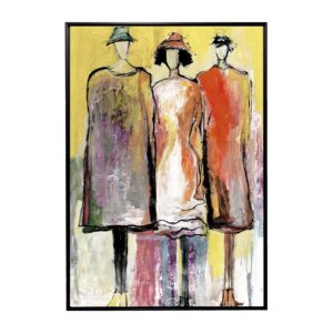[0] => Laviano II is a contemporary wall art depicting four colorful figures on an off-white background. The outlines of the standing figures are filled in with an abstract, collage-like blend of brushstrokes and visual textures in colors ranging from rich earth tones to pale pastels. Sophisticated and stylish, Laviano II comes with a grey frame and is sure to become a conversation piece in your home.