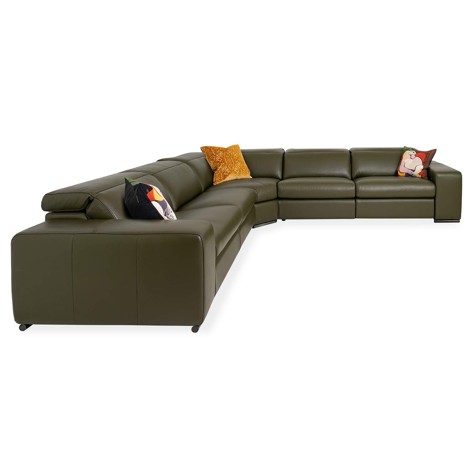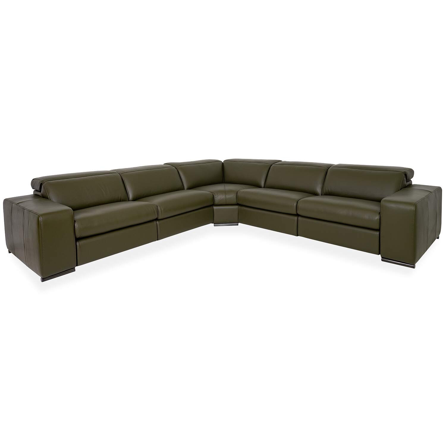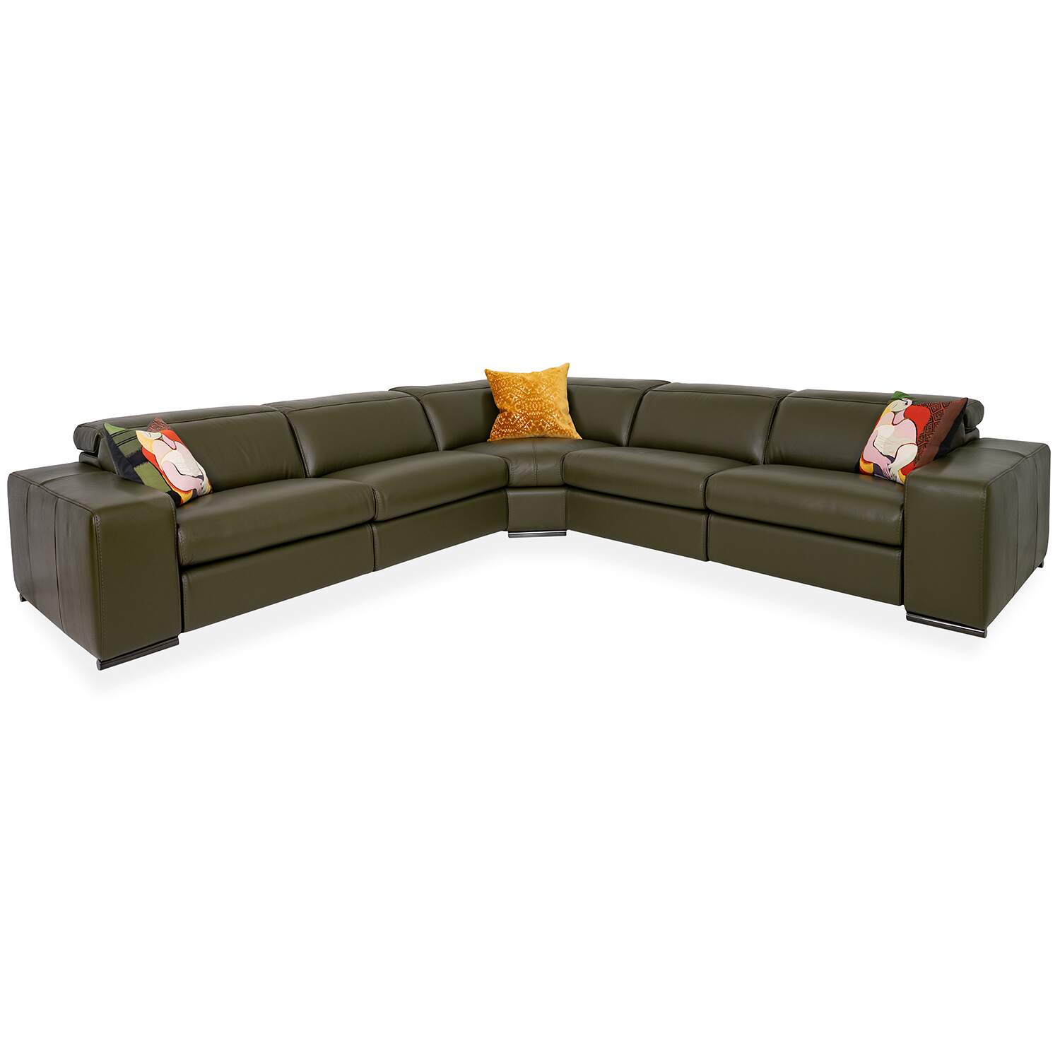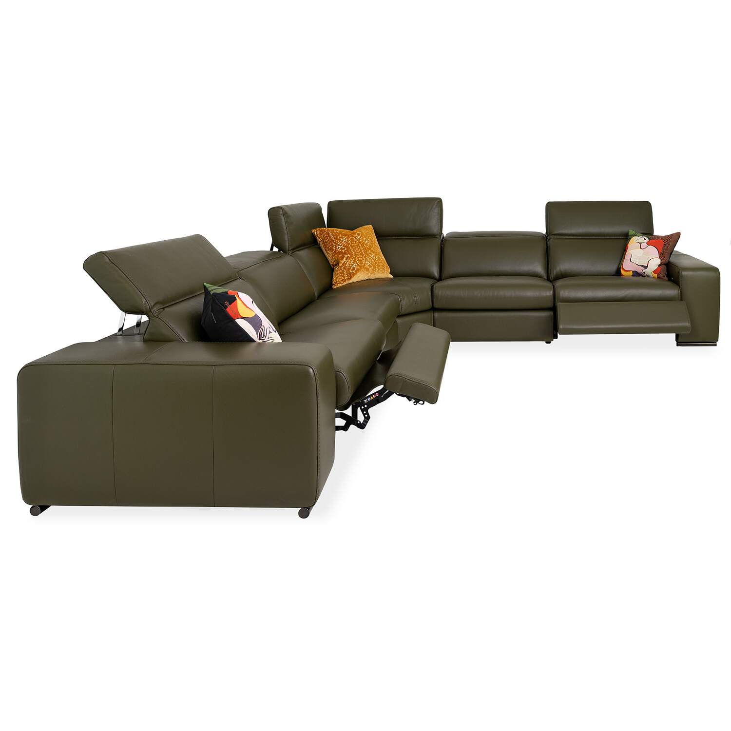 The Lianne Sectional, available in dark olive green Giotto leather, features power motion technology and crisp, clean style, with five wide seats that provide ample room to stretch out and lounge. Three of the seats are equipped with dual power motion, which adjusts the headrest, leg rest, and back angle to your ideal level of comfort at the touch of a button. The power panels also include USB-C charging ports for added convenience. Enhance your living room and make Lianne your favorite place to sit, socialize, or relax.