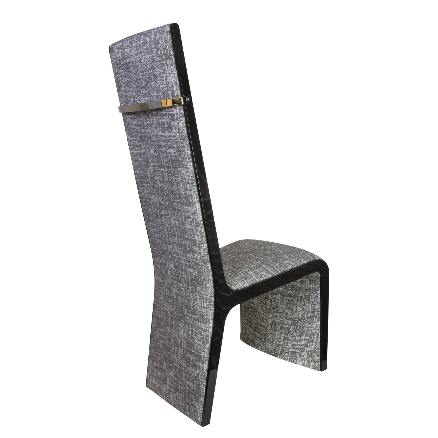 [0] => The Light Dining Chair, made in Italy, features edgy, sophisticated design that accents any contemporary setting. With a carbon high-gloss base and dark grey upholstery, this chair has an innovative appeal with a fluid transition from back to seat to legs. Its intriguing curves are visually striking and comfortable for the body.