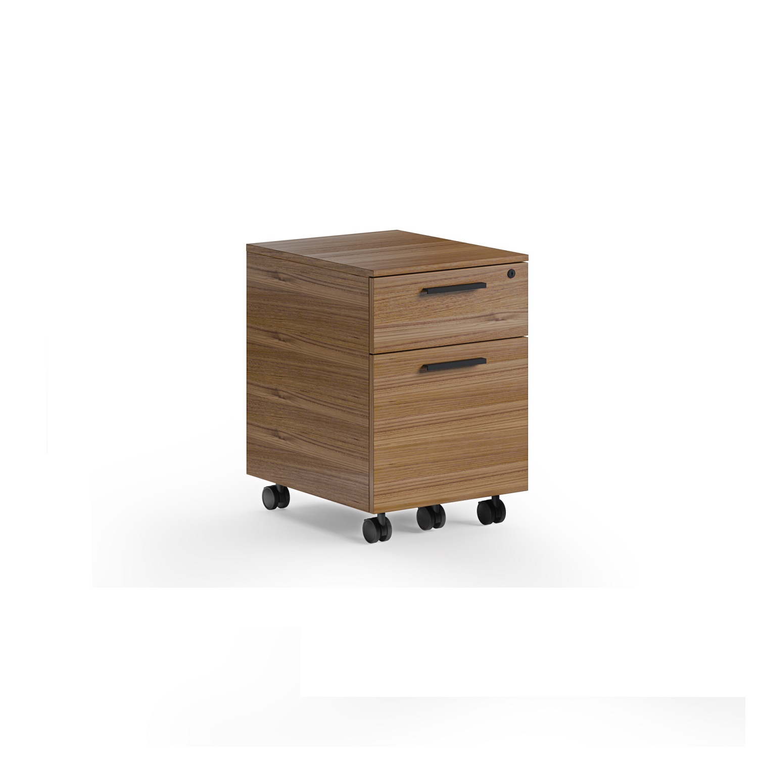 [0] => The Linea Mobile File Pedestal is the perfect accompaniment to any office setup. Its size and mobility allow it to tuck under the Linea Desk, function as a printing station, or sit standalone wherever you need some extra storage. A smaller supply drawer provides space for essentials, and the larger file drawer's adjustable filing system can store Legal, Letter, A4, and Foolscap size hanging folders. The locking wheels ensure the pedestal will stay in place, and the drawer key lock keeps files secure. Shown in natural walnut hardwood veneer.