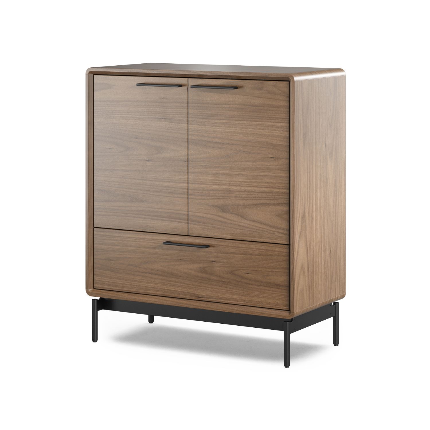 Designed by Matthew Weatherly for BDI, the Linq Entry Cabinet offers concealed storage in a compact, refined form made for entryways, hallways, or any spot where a little extra organization is needed. Linq features a natural walnut finish with dual soft-close doors, a spacious full-width drawer, and two adjustable interior glass shelves to store both everyday essentials and seasonal accessories. Soft-close mechanisms, a black fabric drawer liner, and threaded shelf supports with cushioned rings add thoughtful functionality that stands up to the demands of daily life.