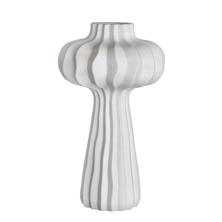 [0] => The Lithos vase in white Portugese ceramic features organic ridges, each of which creates unique natural shadows and catches the light.