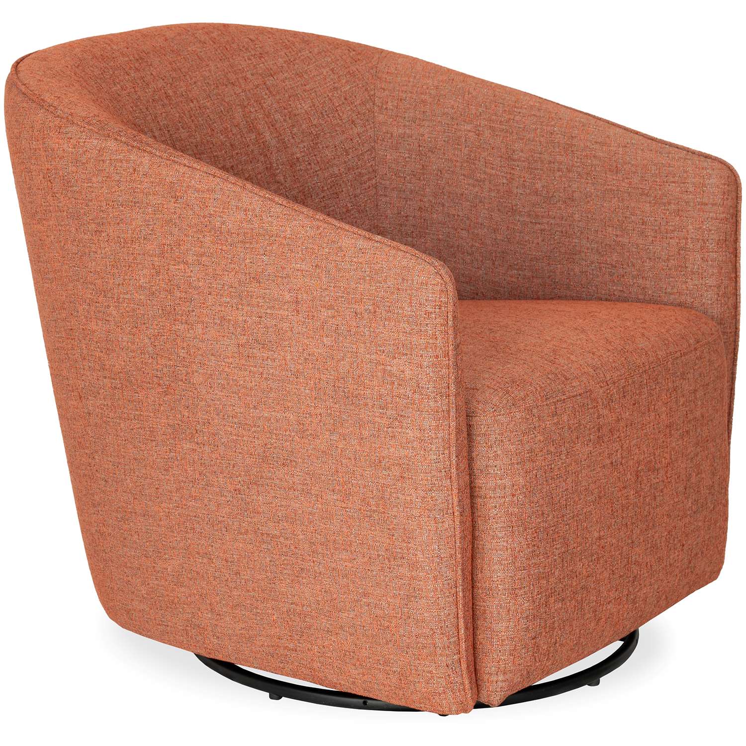 Take your relaxation to a whole new level with the Lotus Swivel Glider Chair, available with red-orange fabric upholstery that has a variegated appearance. Lotus' minimalist, structured look is softened by a rounded frame and sloped arms that subtly envelop the body. This chair adapts to a variety of design environments as well as to the movement of the sitter, thanks to its 360-degree swivel function and soothing gliding motion.