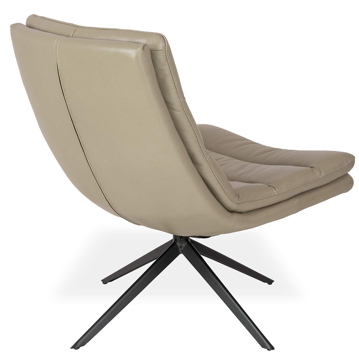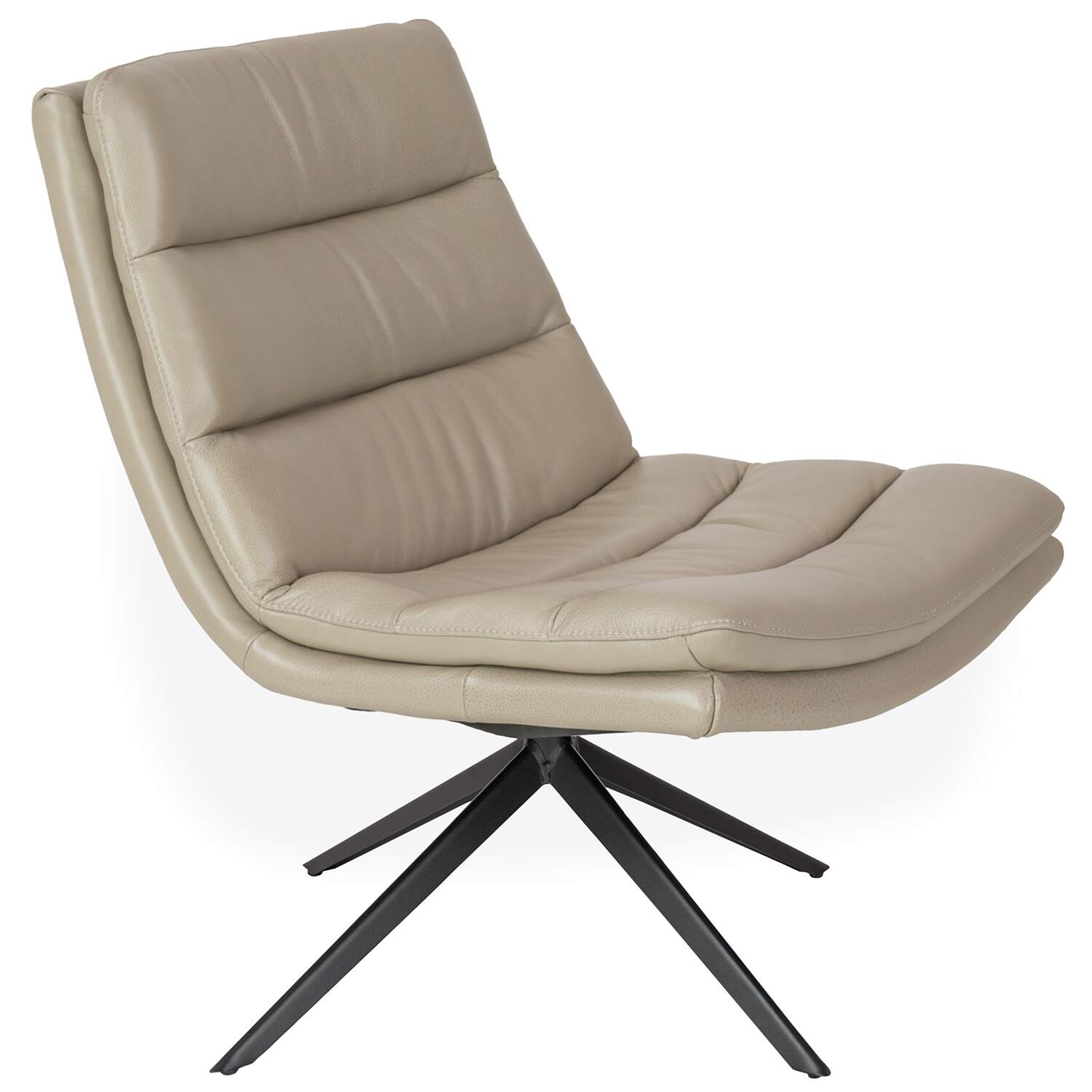 Part of Copenhagen's Essentials Collection, the Luca Occasional Chair features beige Montana leather upholstery, tufted accent stitching, and a lightly angled backrest that invites you to take a seat and relax. Luca has a star base in black metal with a 360-degree swivel function, making it perfect for lounging, reading, or conversation.