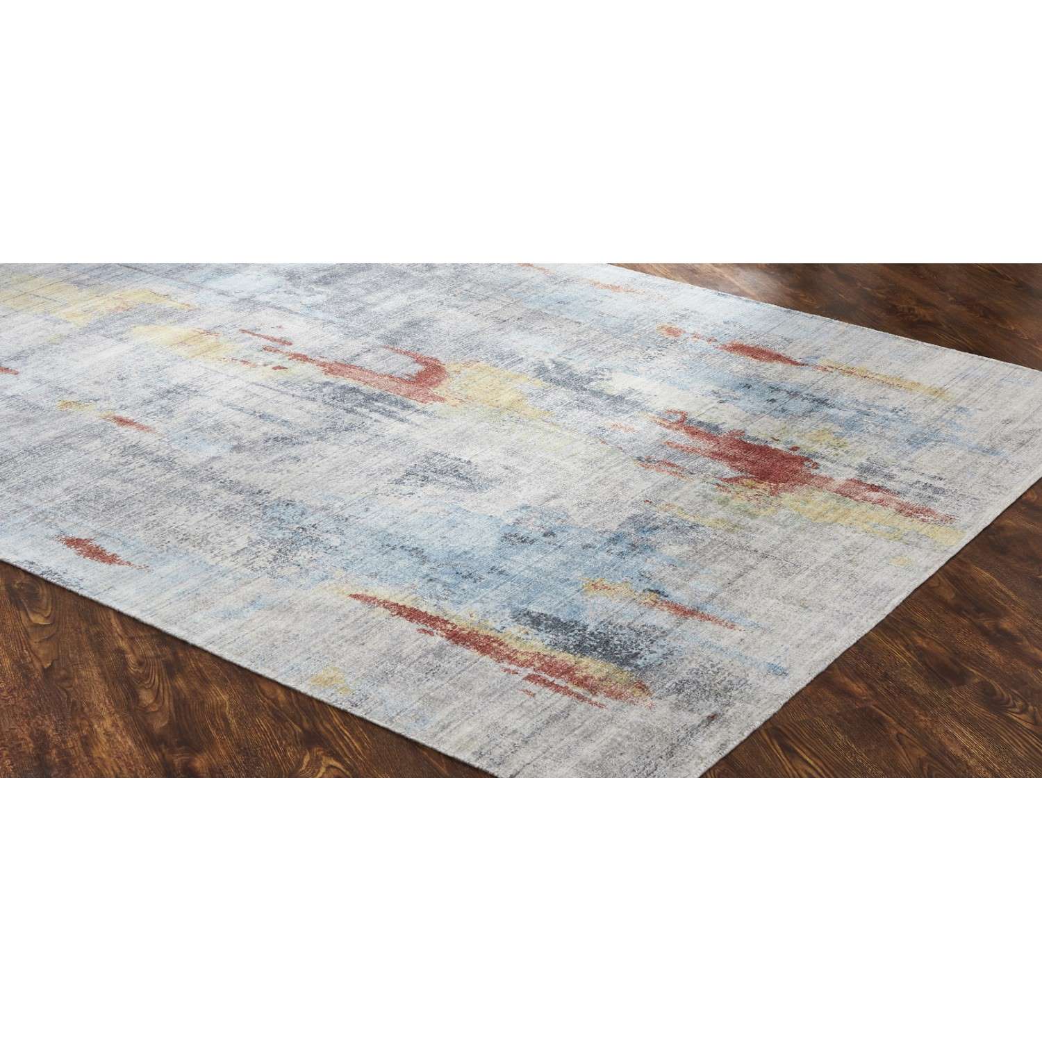 The Lucid Rug features muted shades of grey, red, yellow, and blue in a variegated pattern with a distressed look. This rug is made from Silkette™ viscose with a soft feel and understated shine, and constructed with a Lori-Loom™ weave that mimics the appearance of hand-knotted rugs. Elegant and versatile, Lucid will add a warm accent to a range of modern interiors.