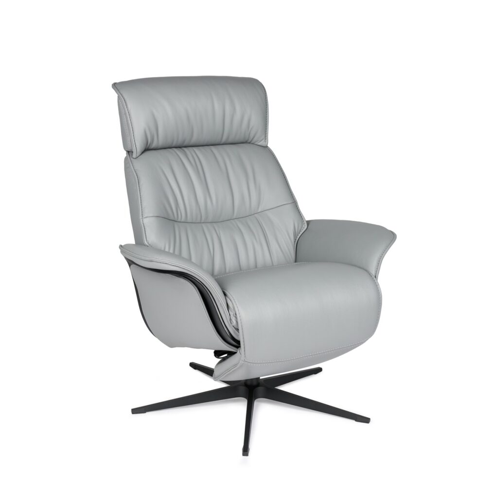 [0] => The Lukas Power Motion Recliner features storm leather upholstery, black wood trim, and a slim line black base with battery power. This recliner is built for both style and comfort, with a 360" swivel base, and a unique motorized system that can adapt the back angle, headrest, and foot rest to suit your level of comfort. A masterpiece in luxury seating with all the built-in functions you could want.
