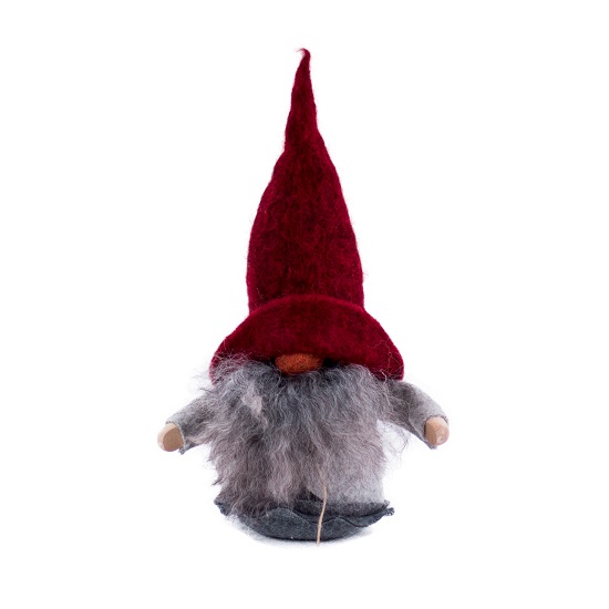 Handcrafted in Sweden, Lukas the tomte is a cheerful holiday companion who brings joy and a smile to the face with his cute hat, fluffy beard, and unique personality. Lukas is crafted from the curly wool of the Gotland sheep, which, using water and soap, is made into felt for his clothing and nose. His beard is also sheep's wool. A tomte, also known as a "nisse" in Denmark and Norway, is a domestic spirit who helps to ensure the protection and well-being of the household.